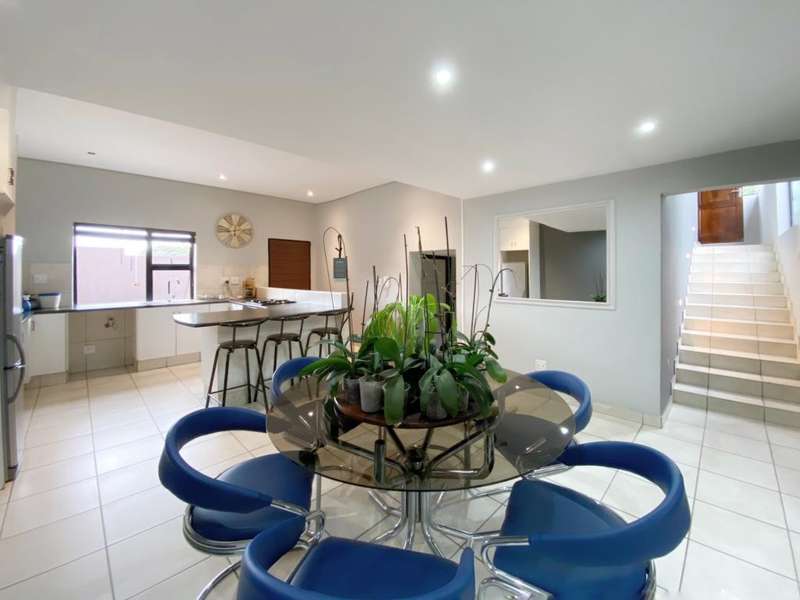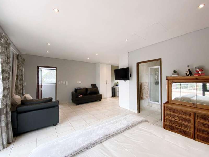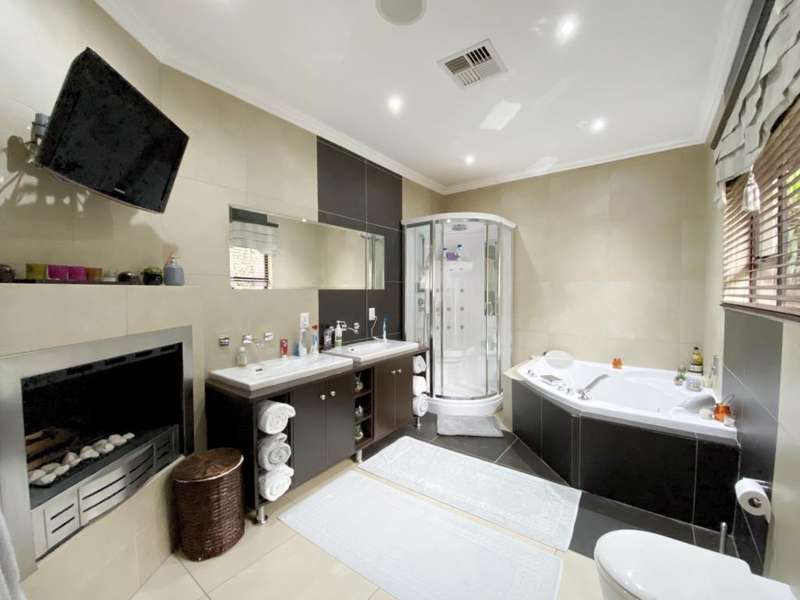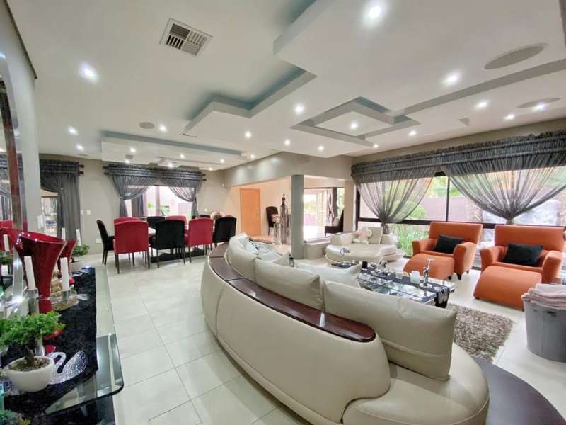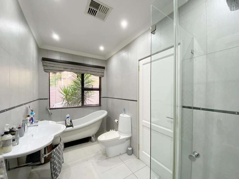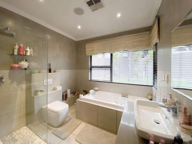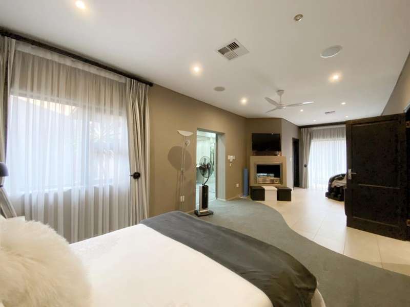 ALL OFFERS TO BE NEGOTIATED UNTIL SOLD! Set on manicured, tranquil surrounds with a sparkling pool can be found this bright, modern home boasting refined finishes throughout. Welcome upmarket living with a double volume entrance leading onto an open plan lounge and dining area flowing effortlessly onto the Mahogany kitchen. The kitchen forms the heart of this home and is complimented with quartz tops, chrome finishes, built-in appliances including oven, microwave and coffee machine, and a generous separate scullery. The enclosed patio further enhances the entertainment features of this home with a built-in braai and Jacuzzi. There is enough space for a large patio table and leads onto the outdoor area offering complete privacy and low maintenance surrounds. The 3 bedrooms feature high quality finishes and are all en suite. The main bedroom offers an additional lounge area with fireplace for those Winter nights. There are 2 self-contained flatlets linking to the main home which each provide a lounge/dining area, kitchen, bedroom and bathroom. With additional features such as staff accommodation, automated garages for 2 cars, covered parking for 2 cars PLUS open parking for up to 8 cars and excellent security?Ǫthis truly is a must-see! Inviting offers from R6 000 000. Asking more.