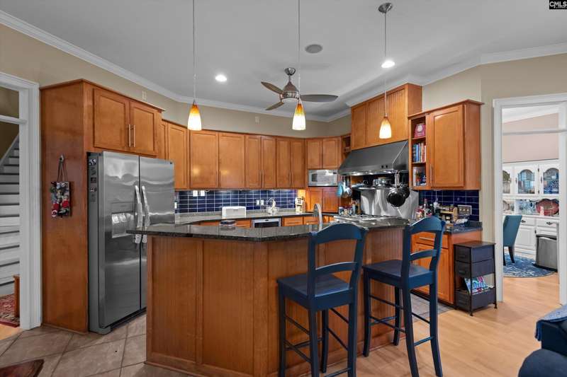 Stunning custom-built home in the popular Stonington Estates neighborhood. Quiet, peaceful, and secure are just a few words to describe this sought-after community, which offers a pool, clubhouse, and a large park area with gazebo. Situated on a spacious 120x200 lot, the property features a fenced backyard overlooking a natural wooded area. Inside, a gracious entry foyer with beautiful hardwoods and a chandelier opens to the living room, office, and formal dining room. The kitchen flows into the family room, showcasing a stone fireplace with gas logs, hardwood floors, and an abundance of windows overlooking the multi-level deck and beautiful backyard. A chef’s kitchen boasts a 6-burner gas stove, griddle, double ovens, pantry, and spacious eat-in area. The main-floor master suite offers a seating area, tray ceiling, and French doors to the deck, along with a luxurious bath featuring dual sinks, a separate shower, whirlpool tub, and a large walk-in closet. Two additional bedrooms on the main floor share a Jack-and-Jill bath with a whirlpool tub/shower. Upstairs, 810 square feet includes a bonus room/FROG with walk-in closet, wet bar area, an additional bedroom with walk-in closet, and a full bathroom. Completing the home are a main-floor laundry room with sink and coat area, and a two-car garage with storage. This home is truly a must-see! Disclaimer: CMLS has not reviewed and, therefore, does not endorse vendors who may appear in listings.