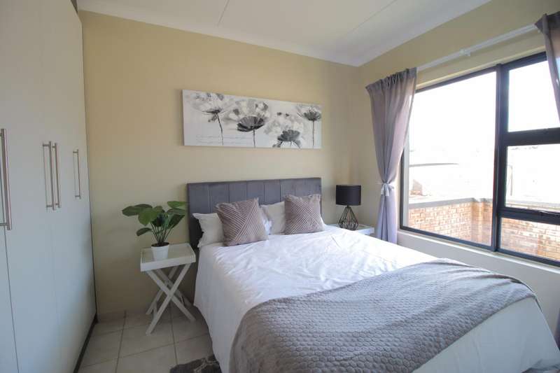 Experience affordable modern living in the tranquil Clover Forest of Rynfield AH, Benoni with this exceptional apartment. Enjoy the unbeatable value of 100% bond availability and affordable pricing in this beautifully designed apartment featuring 2 bedrooms and 1 bathroom, fully tiled open plan living, dining and kitchen areas complete with stunning granite countertops. Pets are welcome, with space for 1 cat or dog. The unit offers a single carport and an additional open parking space, ideally located in Cloverdene, Rynfield AH. Take advantage of the convenience of nearby shopping centers, recreational facilities, medical facilities, and major routes. The apartment features top-of-the-line amenities such as fibre-ready connectivity, prepaid electricity, a separate water meter, and 24-hour security with electrified fencing. Levies start from approximately R 1255 per month and rates from approximately R 455 per month. Experience additional savings with the seller covering the transfer and bond costs, saving you over R 50,000 in fees. Whether you're a first-time homebuyer or a savvy investor, this apartment is an excellent opportunity to secure your ideal living space. Estimated occupation is set for August 2023, so don't hesitate - contact us now to make this unit yours today!