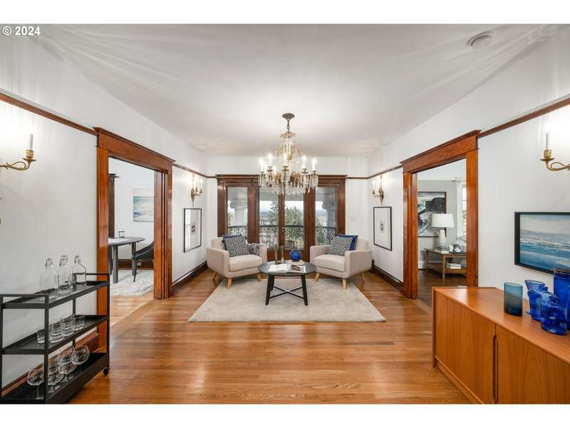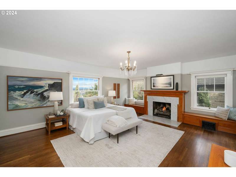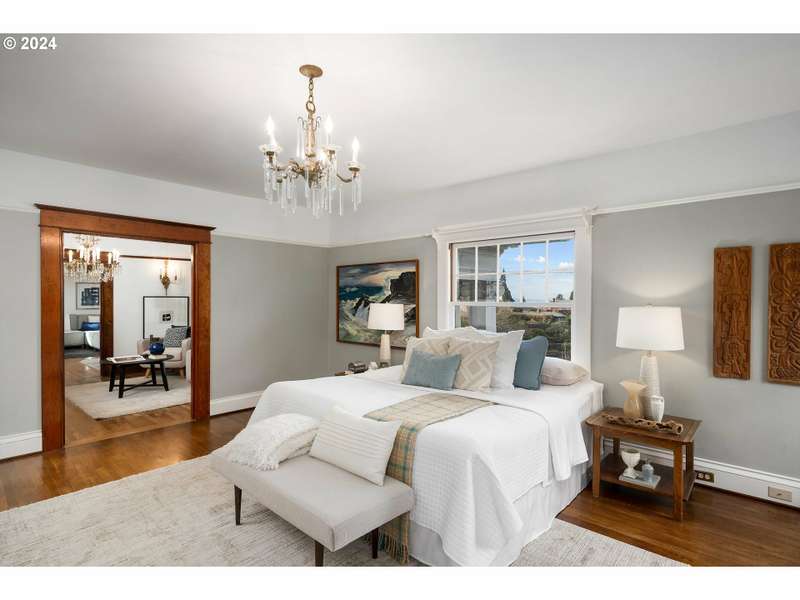 OPEN SUNDAY 9/28 FROM 1-3PM. Welcome home to this Georgian colonial luxury residence. Situated perfectly at the entrance to the Portland heights popular neighborhood grid district. Positioned on an elevated lot to capture the daily city scapes, Mt. St Helens and the river. Interior spaces will never disappoint with the darker wood floors and paneling set against white walls with exquisite period craftmanship. Carefully completed to offer all the modern conveniences of today. Gracious charming rooms, high period ceilings, gorgeous wood floors, larger windows provide an abundance of natural daylight. A recent major upgrade on the lower level which includes fully appointed kitchen, bathroom with walk in shower. Non-conforming bedrooms, laundry room, finished storage spaces, wood floors, separate lower entrance for guests. Second floor features the owners suite, includes dressing room, luxury bath, reading room overlooking the city and an entertainment-media room also with city views. Spacious office-den room with an extra guest suite with bathroom. 3rd floor: historic ballroom with amazing city views and recently completed plumbing for an alternative owners suite with design plans available for potential improvement for bedroom and bath. Recently executed seismic retrofitting, strapped from the foundation up to and including the chimney. Tesla charging port in single car garage, with 2 additional exterior parking pads. Recently upgraded HVAC system. New sewer line 2019. Lincoln school district offering the City's only STEM program, Knob hill shopping in nearby alphabet district, including dining, pubs, shopping, extensive retail and full service hospital. Easy access to major arterials to sunset corridor and airport. 70 miles to the Pacific Ocean, or Mt. Hood. Or 30 miles to Columbia Gorge or the wine country. Possible live work space, Airbnb, or bed and breakfast.
