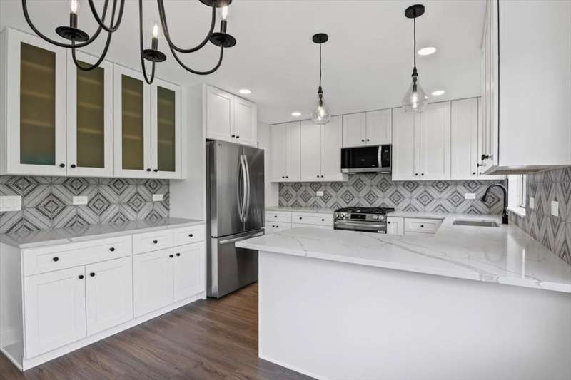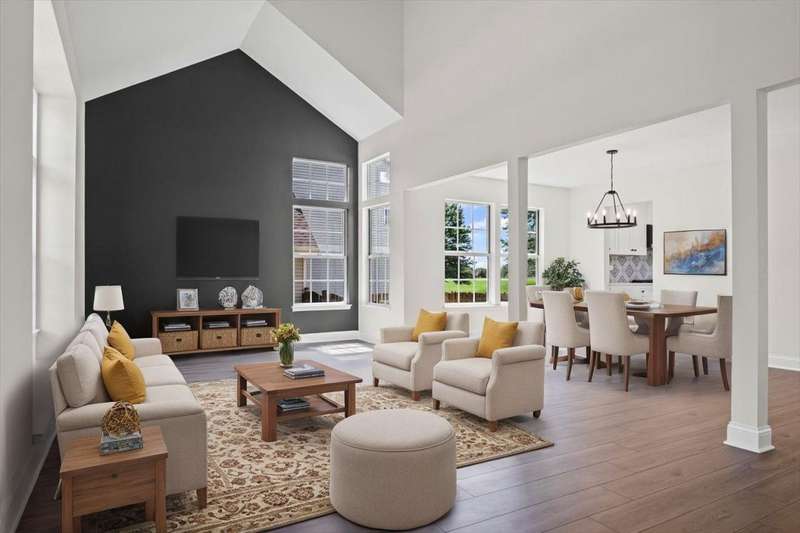 Beautifully updated four-bedroom, two-and-a-half-bath home on a large corner lot, featuring stylish finishes throughout. The brand-new kitchen and bathrooms showcase striking tile work and modern design, complemented by new appliances. The spacious open floor plan is filled with natural light, highlighted by cathedral ceilings in both the living room and the primary suite. The inviting family room offers a sleek fireplace and two sliding doors leading to the new patio, perfect for entertaining. Outside, enjoy a large yard (that can be fenced if desired), along with a two-car garage providing ample storage and convenience. This move-in-ready home combines thoughtful updates with a bright, airy layout designed for today's lifestyle.