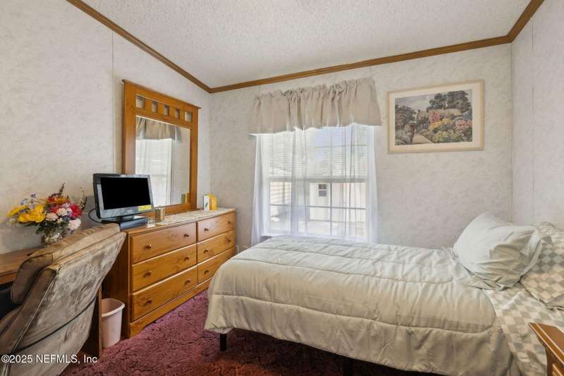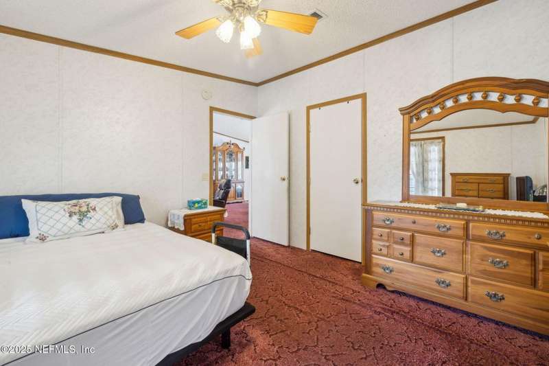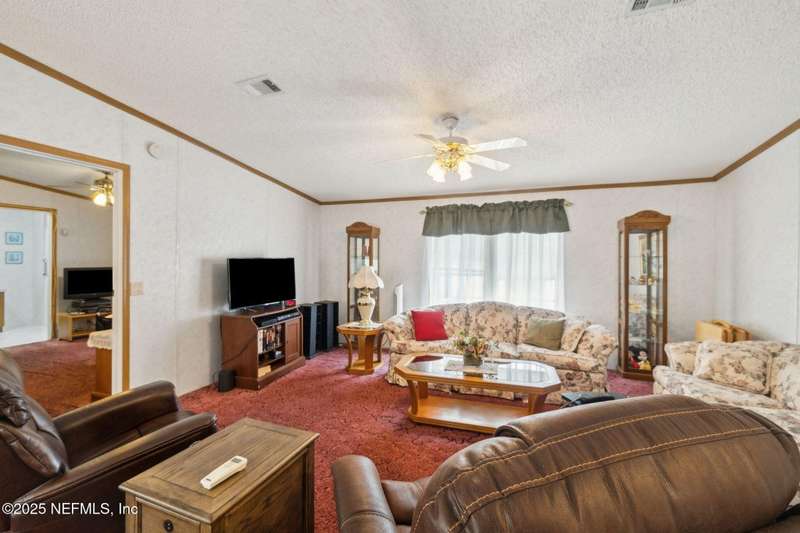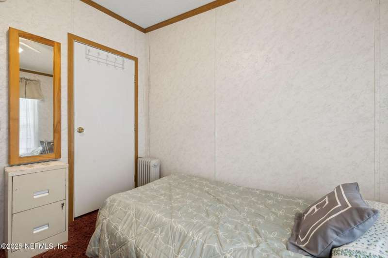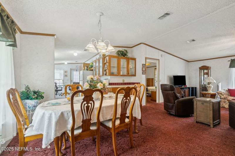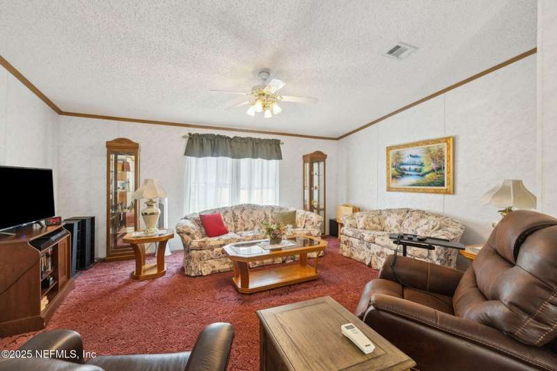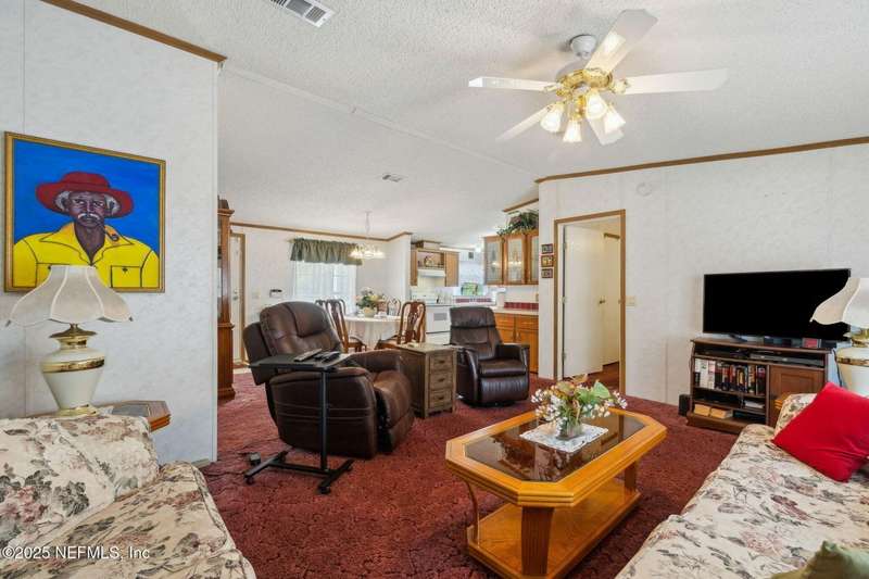 Location, Location! Meticulously maintained Mandarin home! Spacious 3 bedroom, 2 bath split floor plan manufactured home with large living room with vaulted ceilings, separate dining area, fully equipped kitchen with breakfast nook, loaded with cabinet storage & counter space. Kitchen features glass front cabinetry, double sink over picture window, side door to the yard. Primary ensuite features a large walk in closet, full private bath with walkin shower with built in bench. French door opens to back screened porch. Interior laundry room finished with cabinet storage. Crown molding throughout. Secondary bedrooms in their own wing with a full bath featuring shower/tub combo. Large backyard with RV/Boat parking, 2 storage sheds, fenced backyard, large paver patio with additional parking in the back. Great affordable housing in sought after Mandarin area.