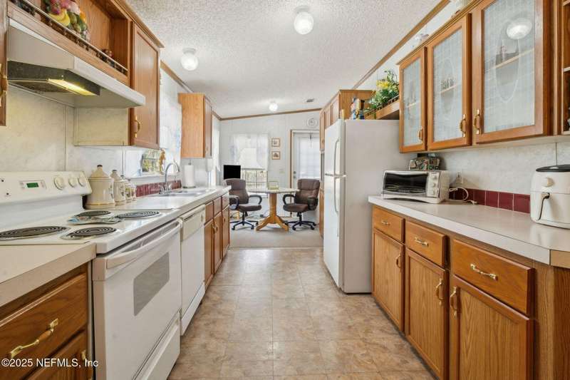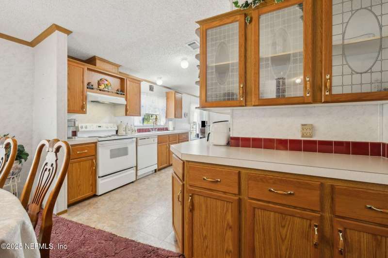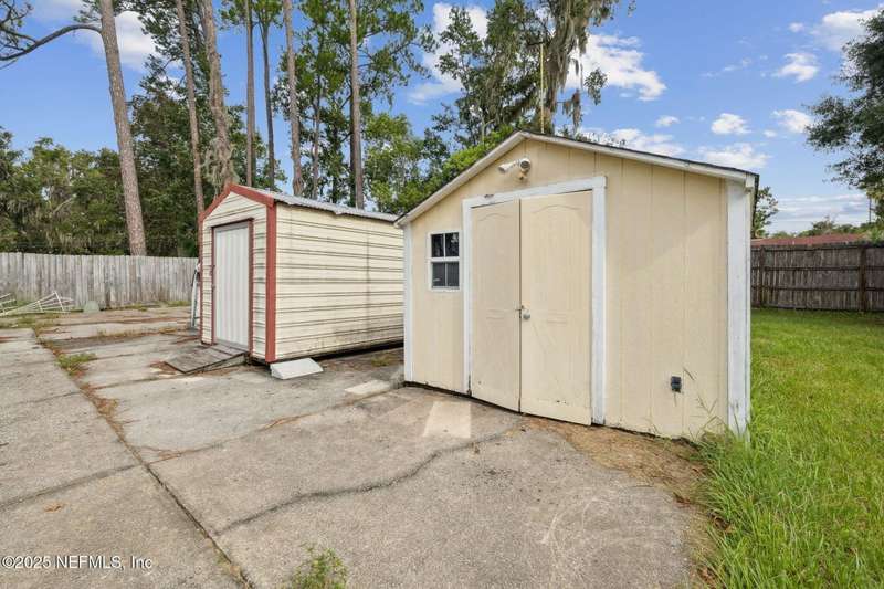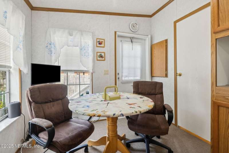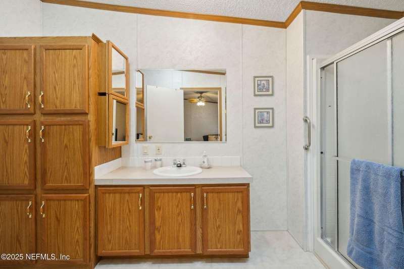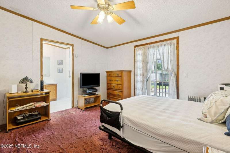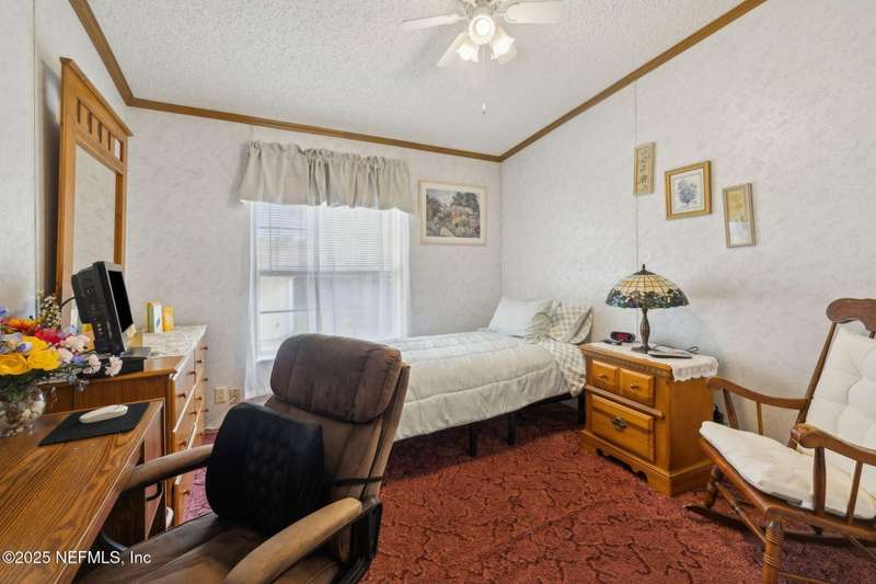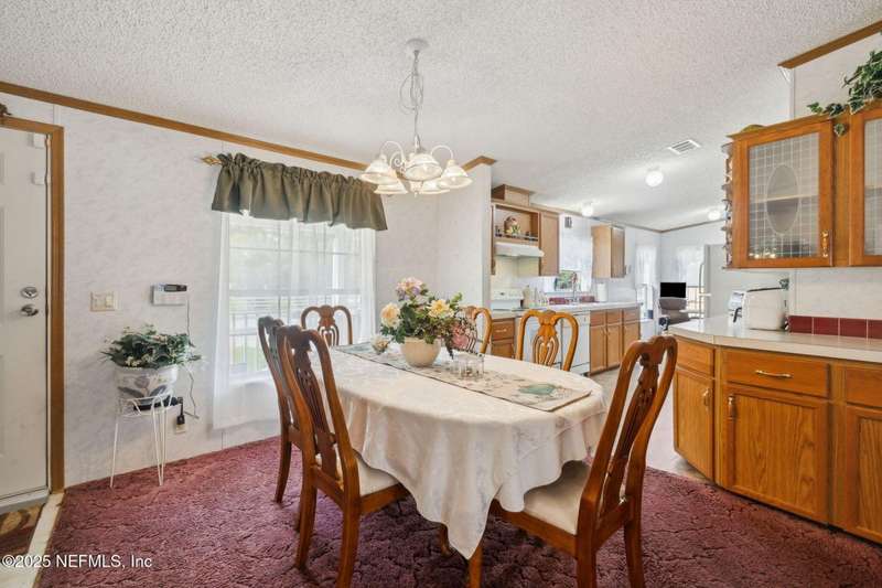 Location, Location! Meticulously maintained Mandarin home! Spacious 3 bedroom, 2 bath split floor plan manufactured home with large living room with vaulted ceilings, separate dining area, fully equipped kitchen with breakfast nook, loaded with cabinet storage & counter space. Kitchen features glass front cabinetry, double sink over picture window, side door to the yard. Primary ensuite features a large walk in closet, full private bath with walkin shower with built in bench. French door opens to back screened porch. Interior laundry room finished with cabinet storage. Crown molding throughout. Secondary bedrooms in their own wing with a full bath featuring shower/tub combo. Large backyard with RV/Boat parking, 2 storage sheds, fenced backyard, large paver patio with additional parking in the back. Great affordable housing in sought after Mandarin area.