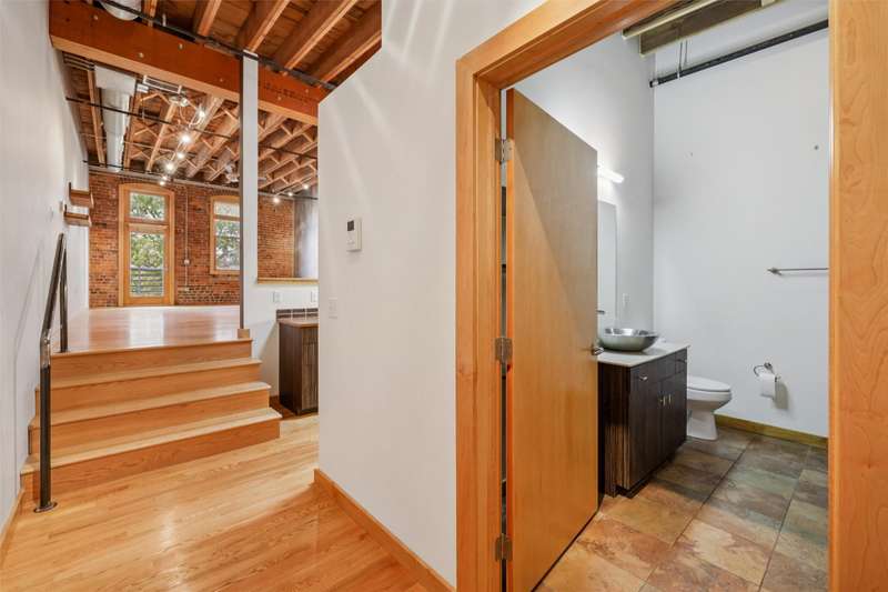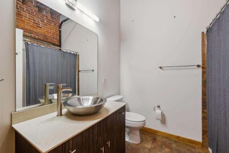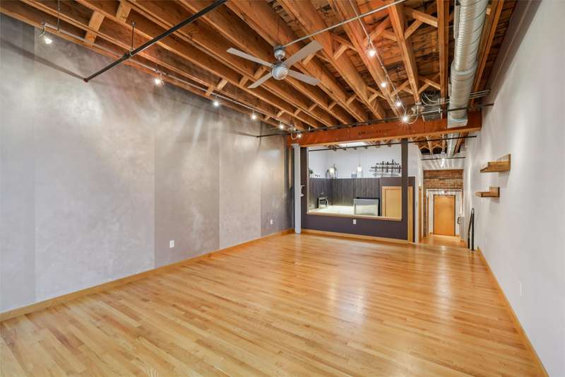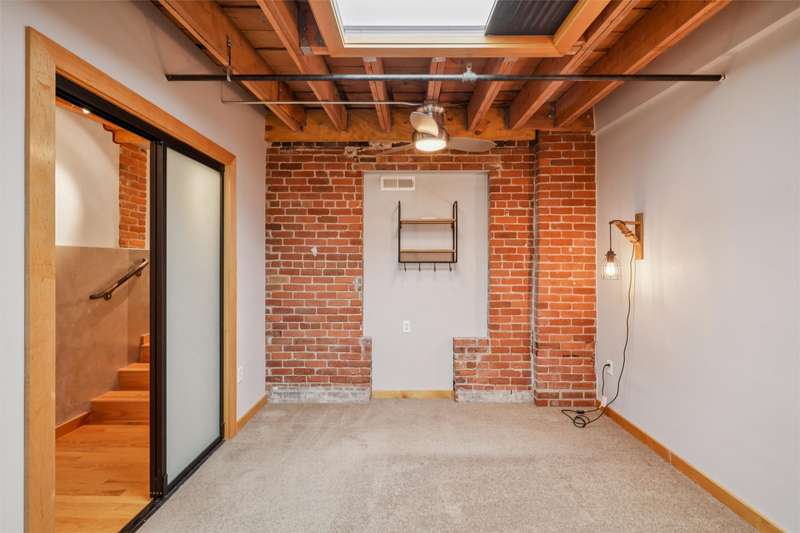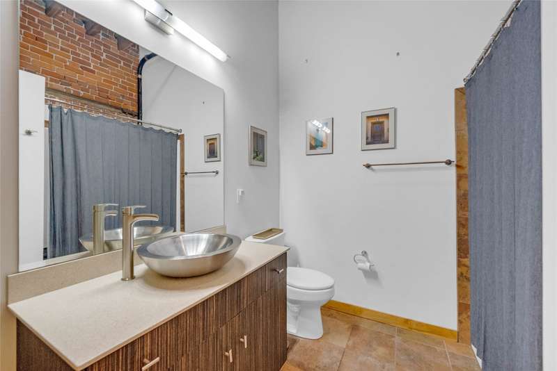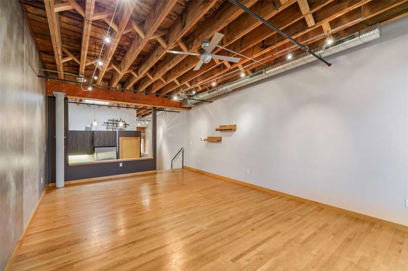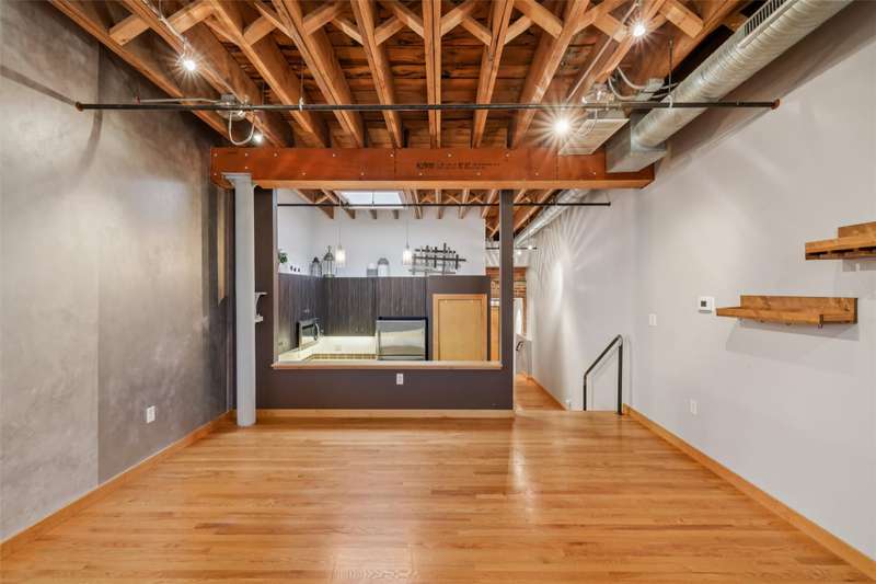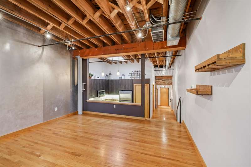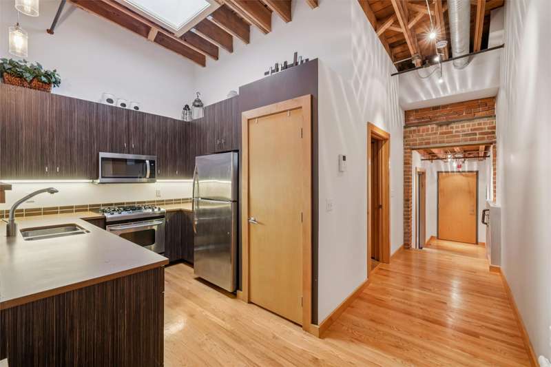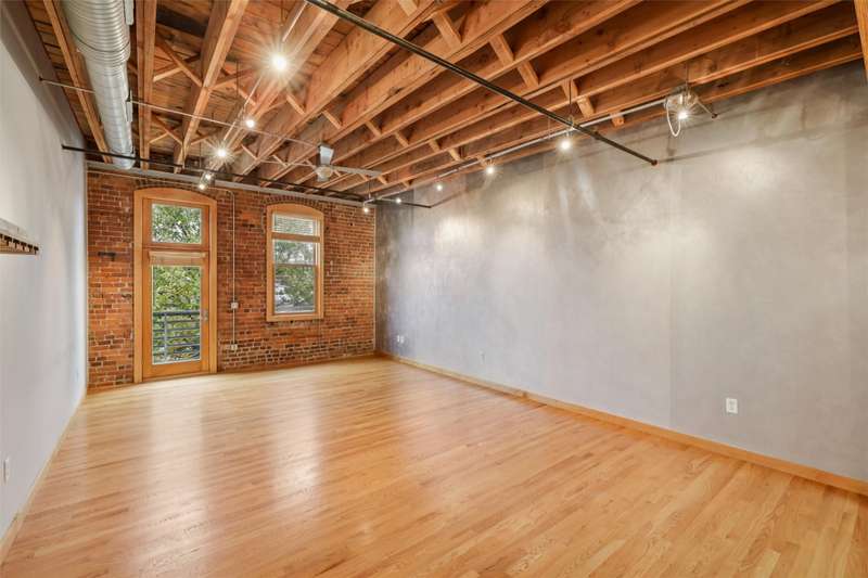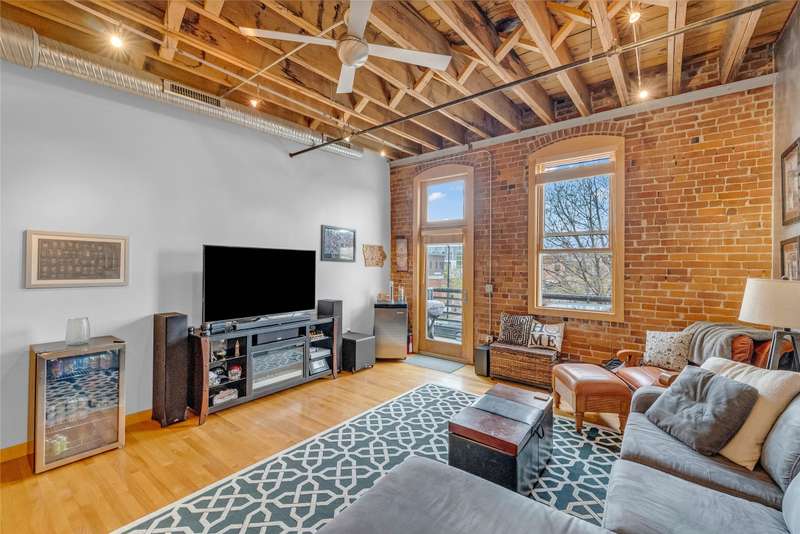 Downtown Living at its Best in the Historic East Village. This impressive condo features 14' beam ceilings, hardwood floors, exposed brick, and a beautiful view of the skyline from your private balcony. Skylight and large windows fill the space with natural light, laundry is conveniently located in the bathroom.Step outside and enjoy unbeatable walkabilityjust minutes from shopping, restaurants like The Taproom and Lucca, entertainment at Woolys, and a quick stroll to the Downtown Farmers Market.This unit includes a dedicated indoor parking space and a 72 sqft locked storage room. Building amenities include a private fitness facility and a shared bathroom/locker area down the hall from the workout room. HOA dues cover water and trash. All appliances included. New furnace and A/C installed January 2025. This home is impeccable and move-in ready for its next owner.