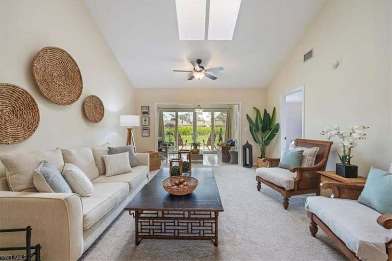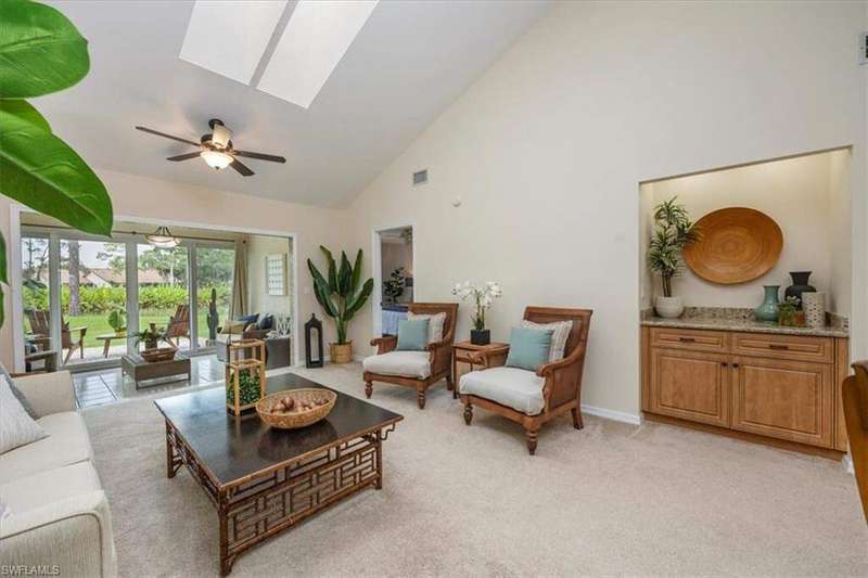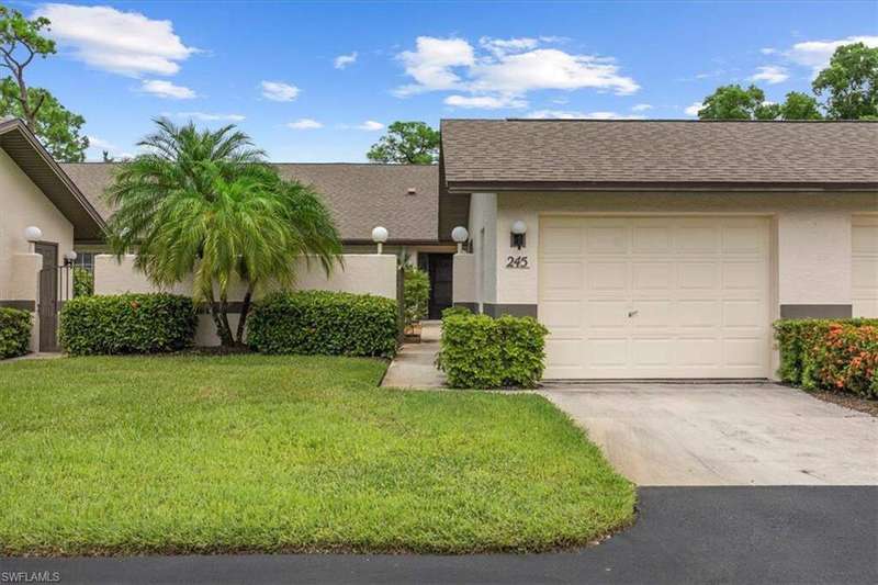 Welcome to Deerwood Villas at Lely Golf Estates, a Naples gem! This move-in-ready villa blends spacious elegance with low-maintenance living. Enjoy the unique enclosed private courtyard ideal for a garden retreat. An additional outdoor space includes a lovely open patio to enjoy the Florida wildlife and the 11th hole of Royal Palm Country Club. This villa is full of natural light! The open-concept great room boasts soaring ceilings and skylights. The chef's dream kitchen features ample counter space and a sunny eat-in area. Each of the 2 bedrooms features private bathrooms. Detached one-car garage. 2018 roof. Impact sliders on lanai. Roll down hurricane shutters on windows. Relax by the community pool steps from the villa with a brand-new deck, servicing only 20 villas. Ideally located minutes from downtown Naples, pristine beaches, shopping, and dining options.