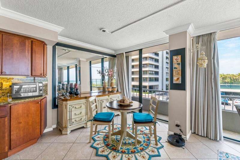 Beautiful 2 BR, 2 BA condo offers an idyllic blend of comfort & coastal charm. Open concept & spacious living areas have ocean view. Granite kitchen, crown molding, impact glass. Nicely remodeled modern lobby. Community has 24 hr manned gate access, new seawall 2022, pool, tennis courts, fitness center, private beach access, shuffle board, putting green & on-site management. Desirable ocean to Intracoastal location close to PGA, Phil Foster Park, Gardens Mall, fine dining, & boutique shopping Embrace the vibrant culture & outdoor adventures making every day feel like a vacation. 1 assigned parking spot, no pets, no time delay for rentals.