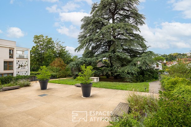 This private and carefully maintained outdoor space offers a natural extension to indoor life. The surrounding vegetation and the tranquility of the place contrast harmoniously with the direct proximity of Lyon, offering a subtle balance between city and nature. A private parking space is available at an additional cost.