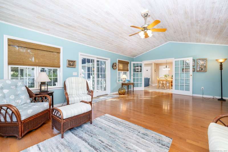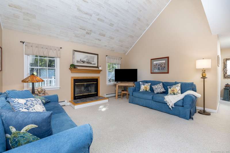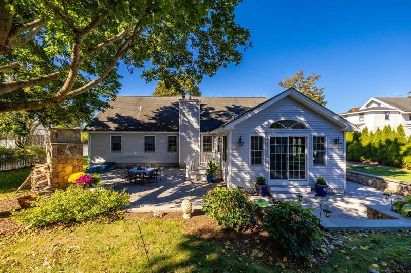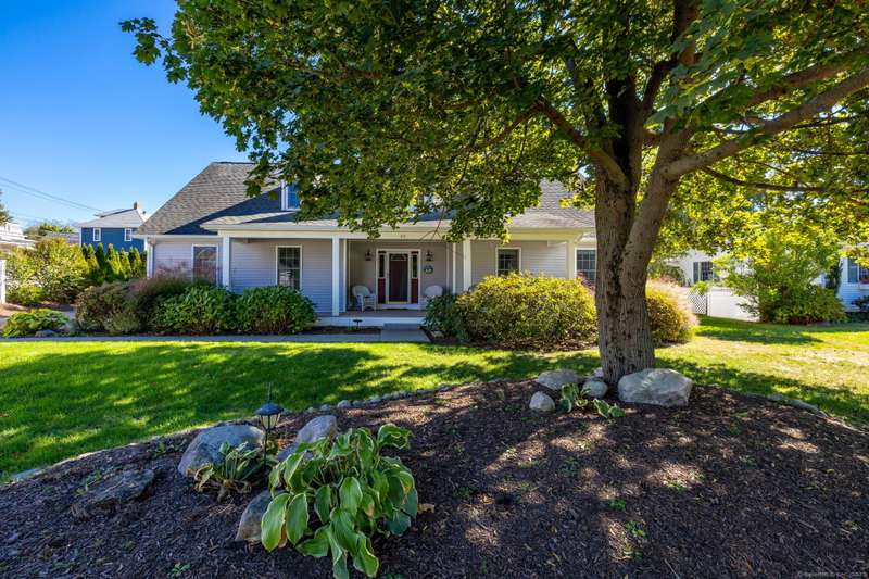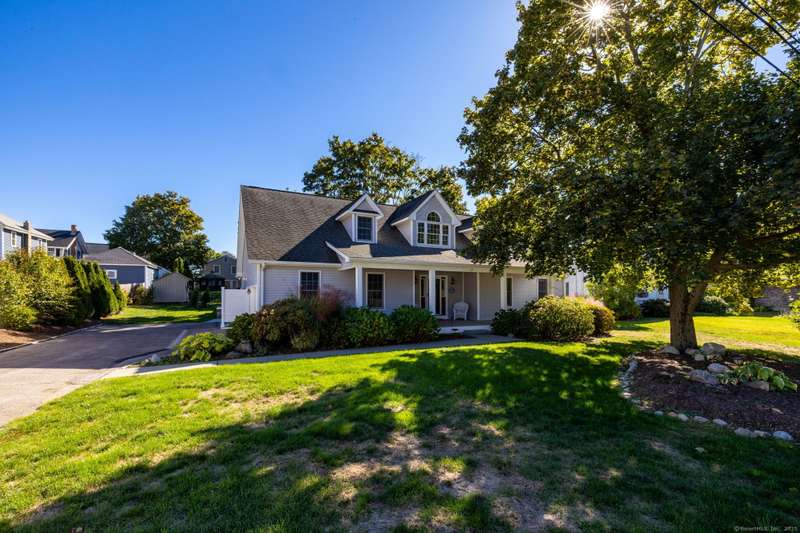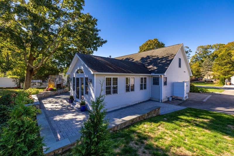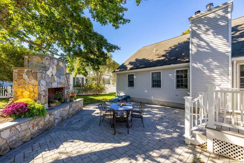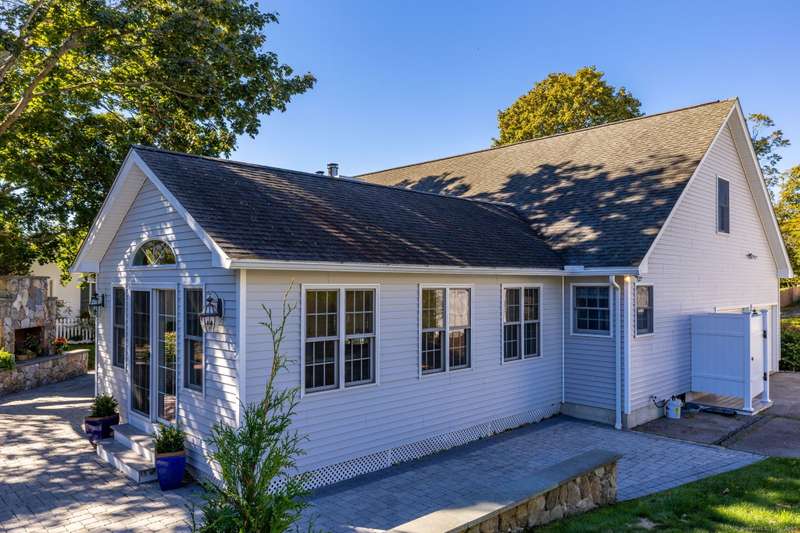 Enjoy Life at the Beach, a slower pace, a peaceful vibe. Year round or vacation home , make this meticulous 5 bedroom cape your own! Stunning sun-filled vaulted entry foyer leads to the open concept great room with fireplace. Spacious kitchen open to three season Sun-room. Sliders from sun room give access to a large patio with magnificent stone outdoor fireplace, ideal for hosting family and friends or enjoying your own private oasis. This fabulous open floor plan with the option of one floor living includes main floor primary bedroom suite, two additional bedrooms and renovated main floor bath. Upstairs will help host those overnight guests and family in two oversized bedrooms with plenty of closet space. Main floor laundry off the kitchen and a two car attached garage. Full dry unfinished basement with hatchway allows for plenty of storage. 2025 New Boiler. 200 amp electrical. Convenient outdoor shower. A short walk to beautiful Crescent Beach! Association optional. City water ,city