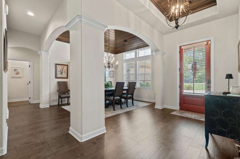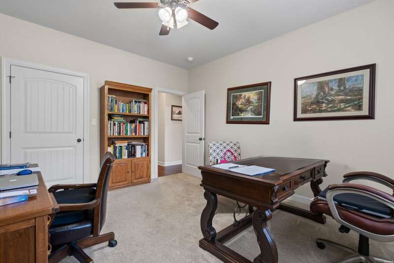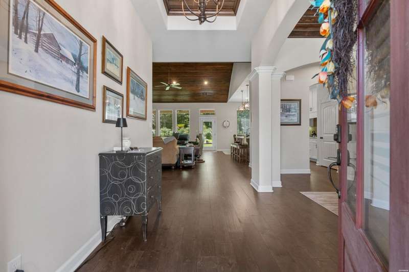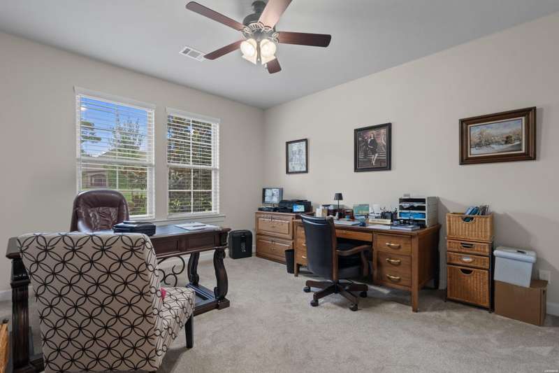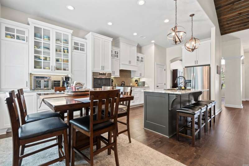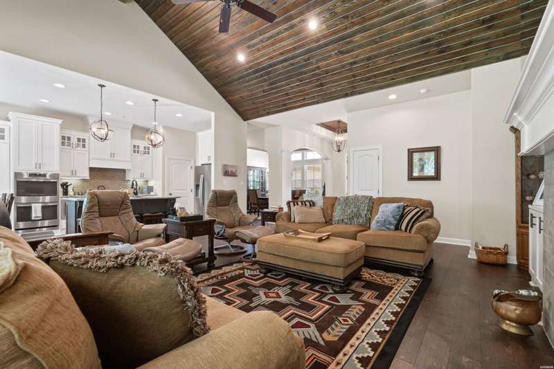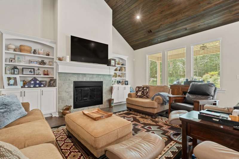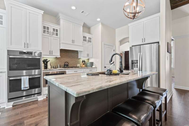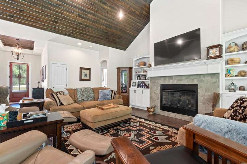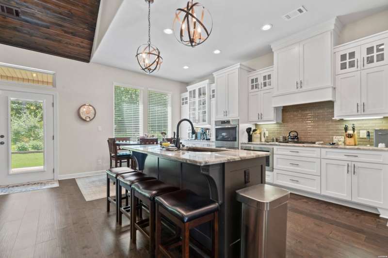 Welcome to your dream home nestled in the picturesque Glencairn neighborhood of Hot Springs, Arkansas! This impeccable 4-bedroom, 2.5-bath house offers a perfect blend of tranquility and convenience. Step inside and be greeted by a modern kitchen adorned with high end finishes. The sleek design and abundant storage space make this kitchen a chef's delight with a gas cooktop and large island with breakfast bar. Adjacent to the kitchen, the inviting living room features stunning wood ceilings and a cozy gas fireplace, setting the perfect atmosphere for relaxation and gatherings. There is a formal dining room for larger gatherings or a eat in kitchen. The split bedroom layout provides privacy for owner and guests alike. The fourth bedroom is currently being used as a home office. This home has ample storage throughout including indoor floored attic access. This could be finished out and made into more living space as well. Venture outdoors to discover your own private oasis with a covered patio. Whether you're hosting summer barbecues or enjoying a tranquil morning coffee, this outdoor space is ideal for all your entertaining needs. This home showcases its aesthetic charm but also ensures worry-free maintenance. Additionally, the spacious garage offers ample room for your vehicles and storage.