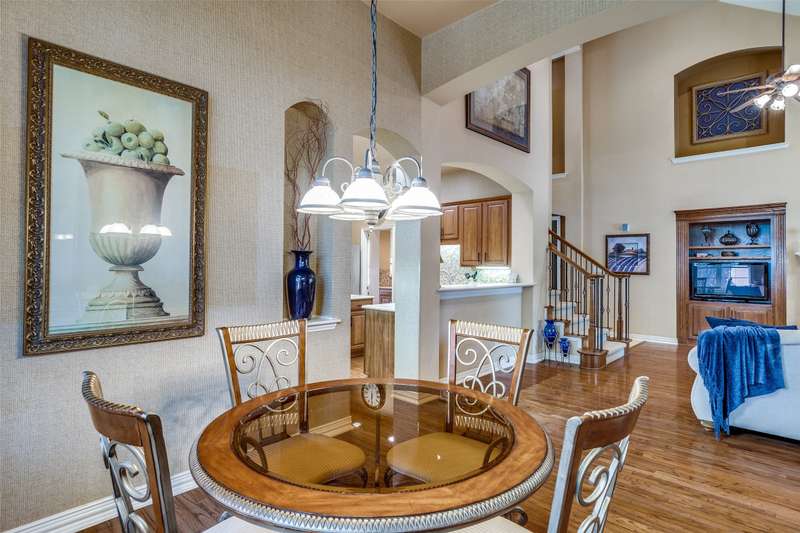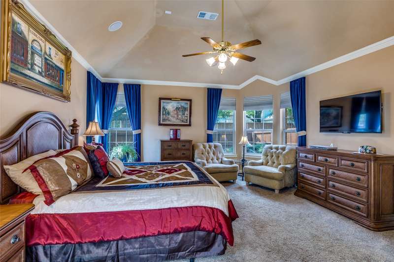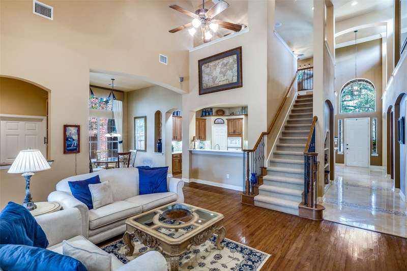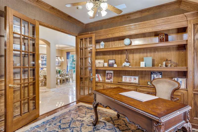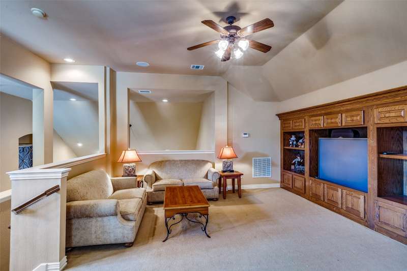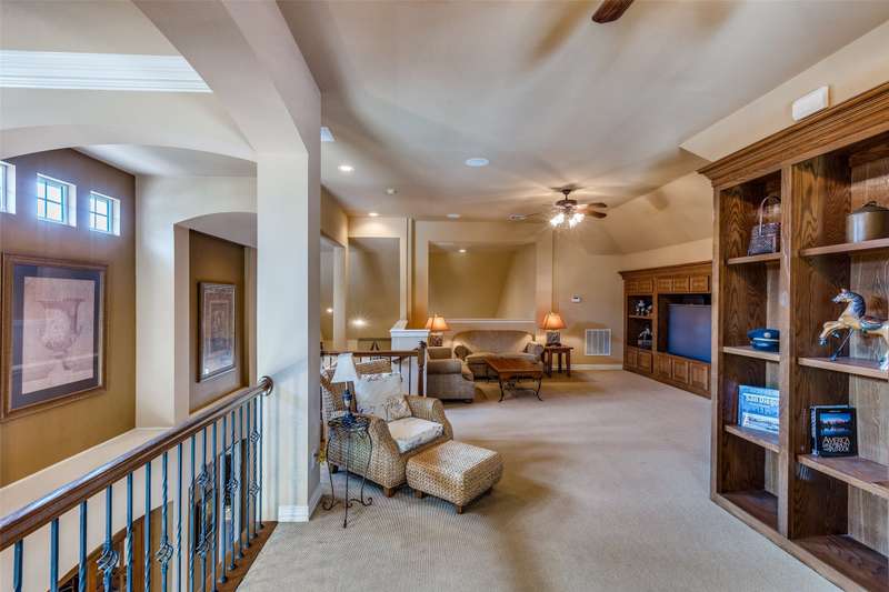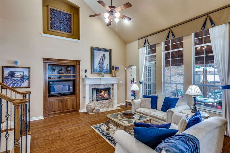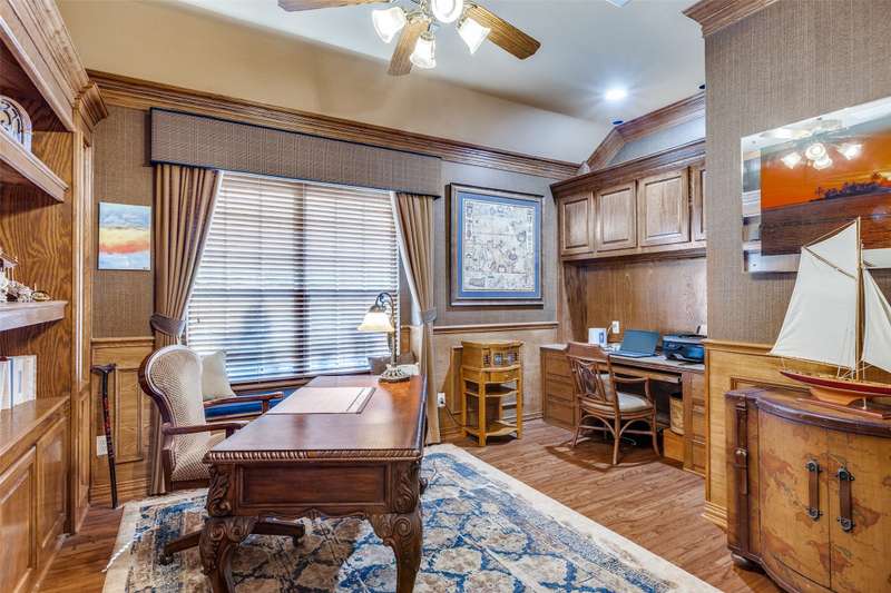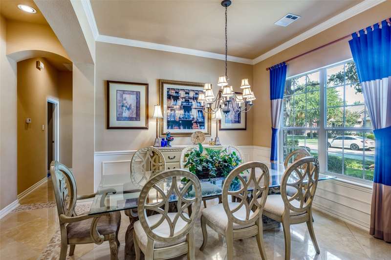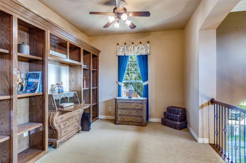 Abundant flexible living space is the star of the show in this home! And exciting custom amenities in the former model home are the supporting features. Add the location, facing northeast, set in one of Friscos most popular communities filled with outstanding amenities, winding streets and friendly neighbors and you will find a winner that will delight the most discriminating buyers! An impressive curving front walk leads to the porch lit by a pair of lanterns and framed by lovely landscaping and shady trees. Inside, you will find a backdrop of tall ceilings, spacious rooms and interesting architectural details. Numerous built-ins are thoughtfully placed throughout the home. The front living room could be a music room or second office. Entertain and enjoy family activities in a family room with soaring ceilings, a fireplace and an entertainment center. The adjoining kitchen has abundant cabinets and a handy island. In a nearby niche is a planning desk. Both formal and casual dining areas are available and when nighttime arrives, three restful bedrooms await. The primary suite is very spacious and includes a bath with dual vanities, a soaking tub and a shower with a seat. The home also includes an executive style office with a desk and bookshelves. A powder bath is handy for guests. Upstairs a huge room completes the home and awaits the buyers imagination. It can easily be divided into two open spaces, one that could be a reading nook or office and the other a gameroom. With a sound system present, it also could be a theater room. This home has been lovingly maintained, and the roof was updated in recent years. But thats not the end of the show! Outside, owners can enjoy relaxing under a large shady pergola on a patio that views a charming waterfall spilling over rocks and plants to create a soothing ambiance. And dont forget the schools! Students will thrive in highly acclaimed schools in the Frisco district! And the winner is2251 Mustang!