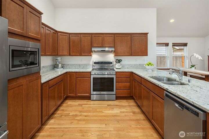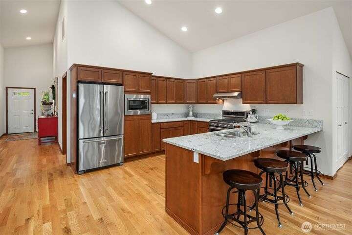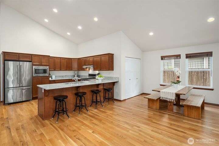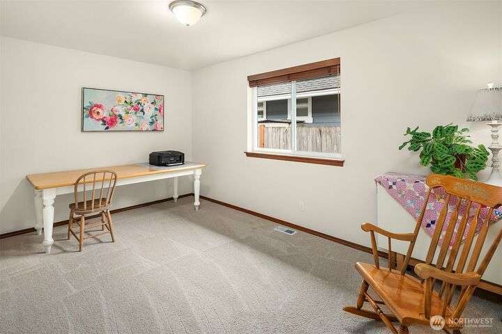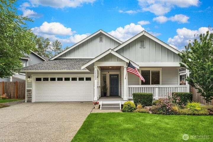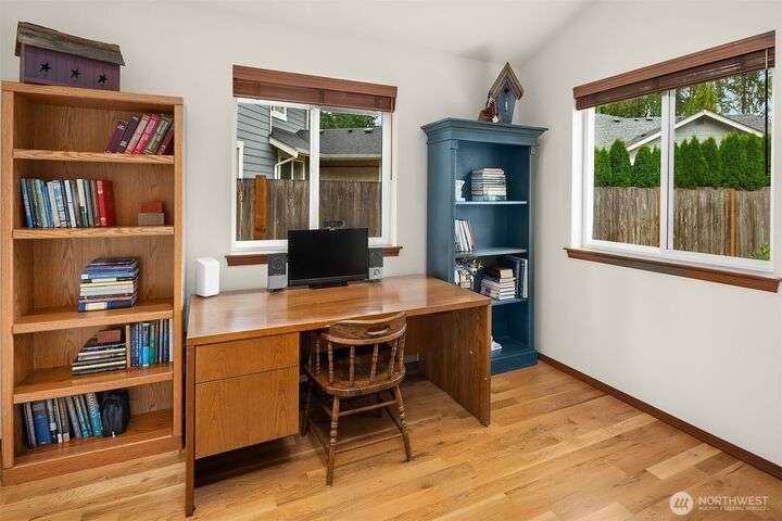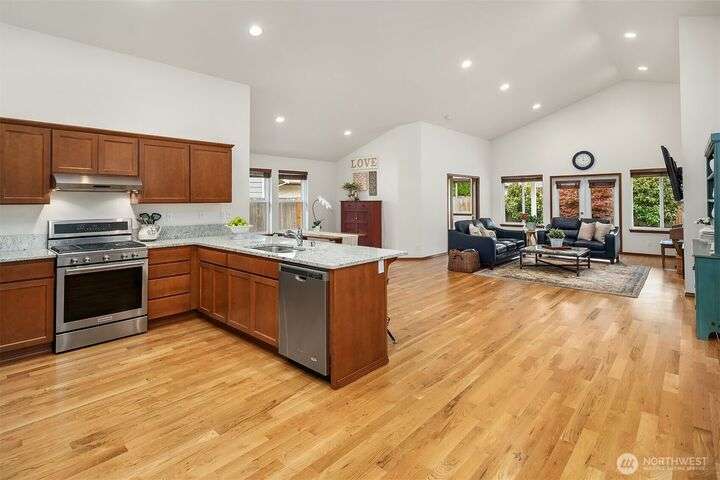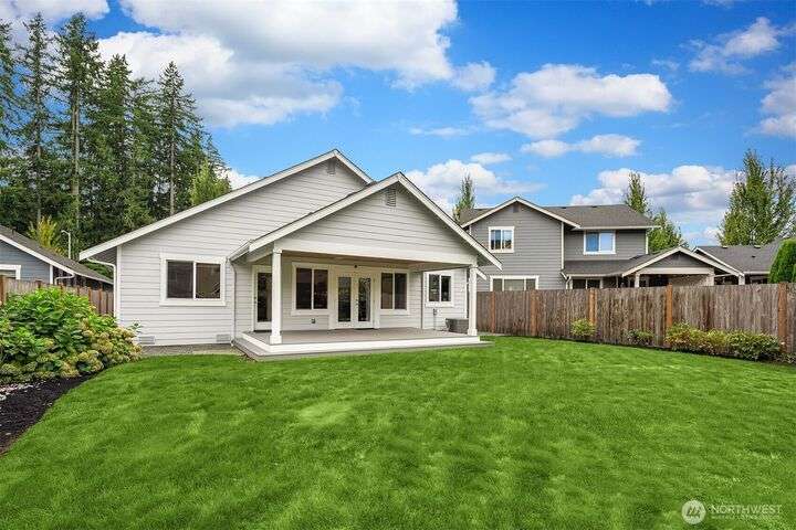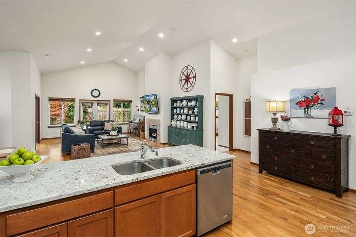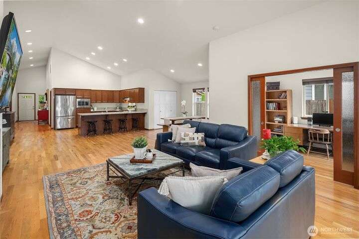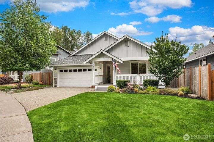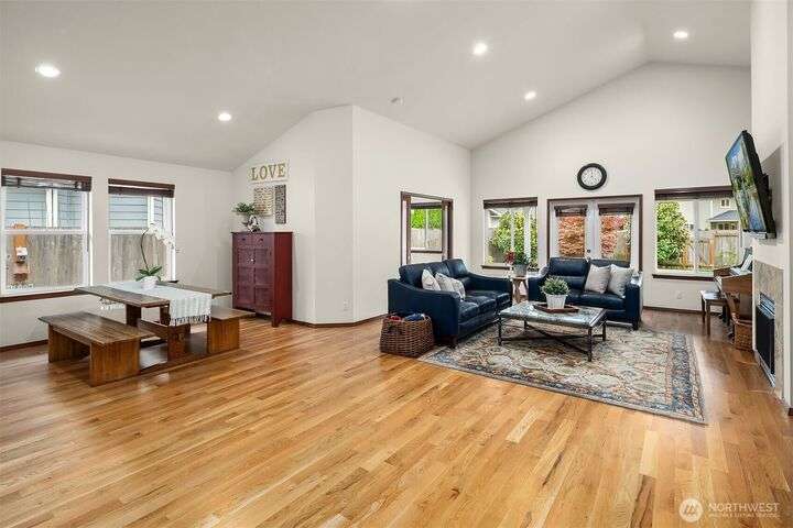 Immaculate rambler where natural light, soaring ceilings, & gorgeous oak hardwoods set the stage for easy living. Open kitchen flows seamlessly into the great room, perfect for cozy nights by the fire or hosting large gatherings. Office (with closet!) can double as a 4th BR or playroom. Outside, enjoy summer evenings on the 21x12 covered deck overlooking the sunny, private, fully fenced backyard. With composite decking front & back, maintenance is a breeze. Best of all, your own gate leads straight to the community park- extra space to play without leaving home. Freshly painted exterior. Oversized garage storage (room for a side-by-side!). Mins to downtown, yet tucked into a quiet, neighborly street, this is the one you’ve been waiting for.