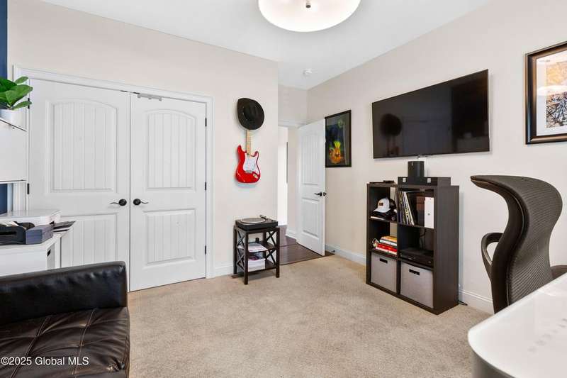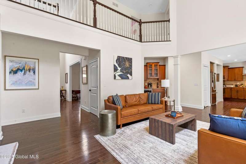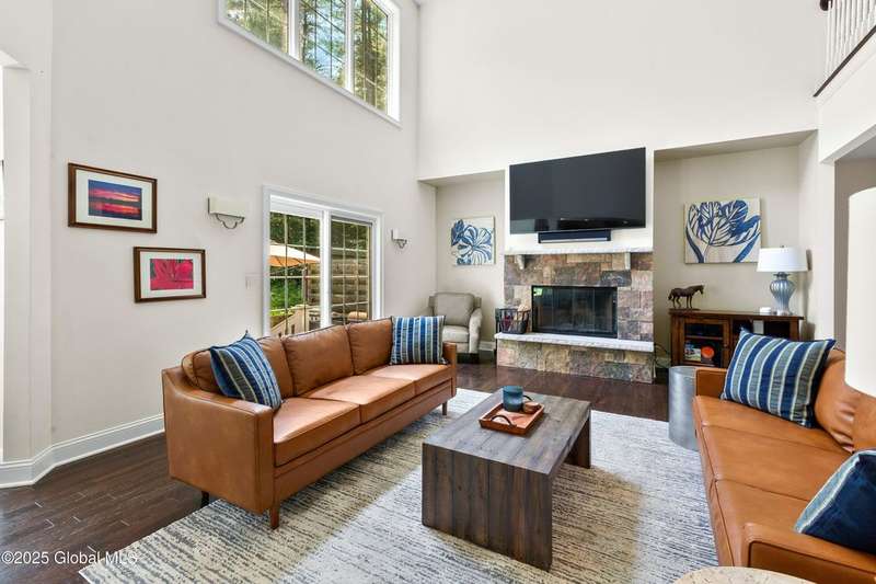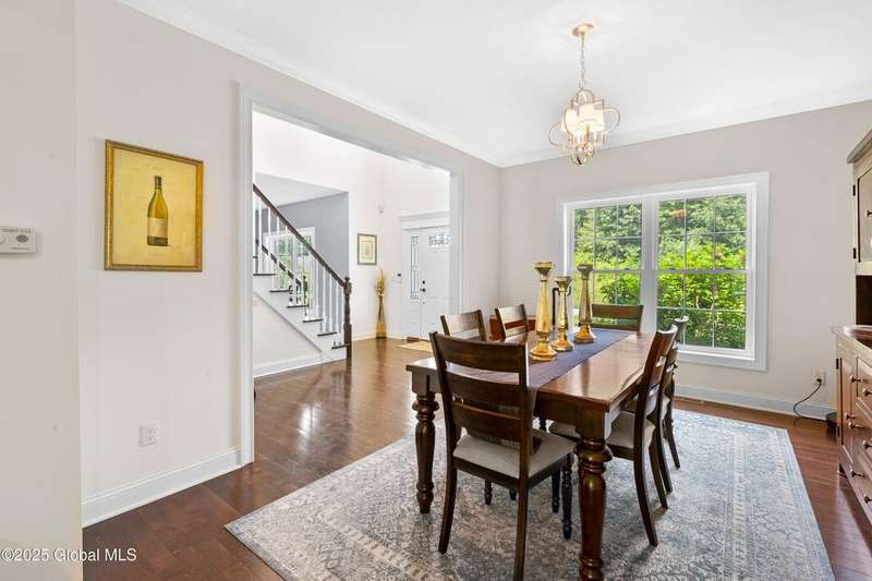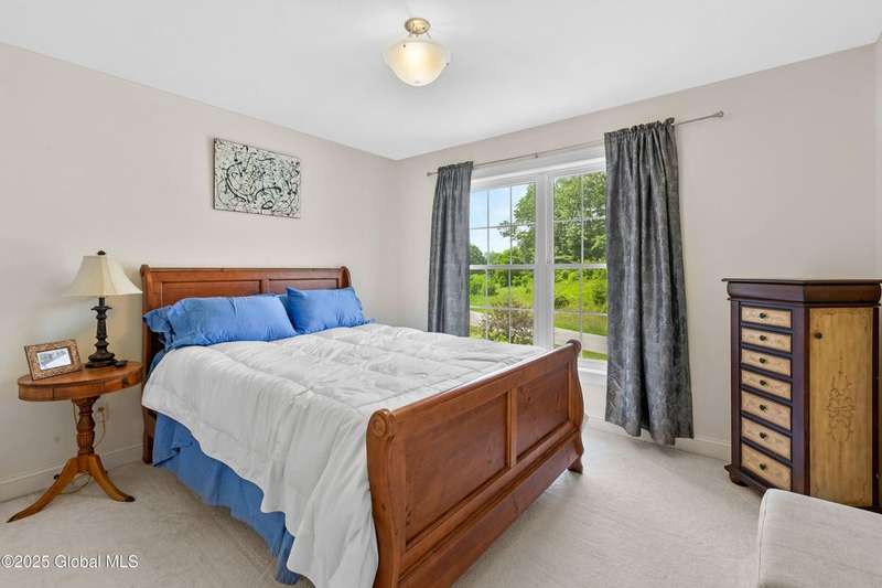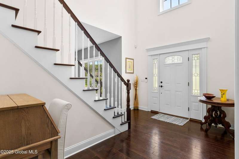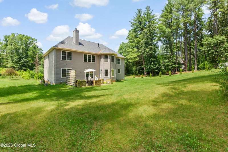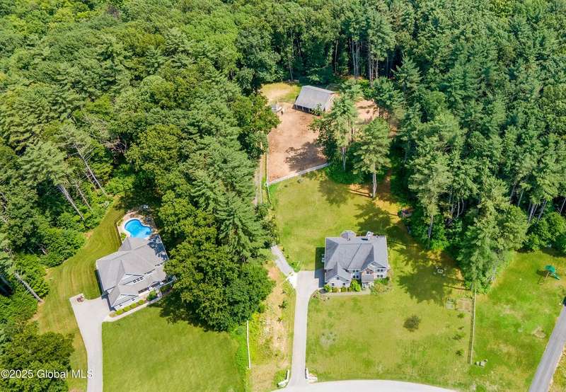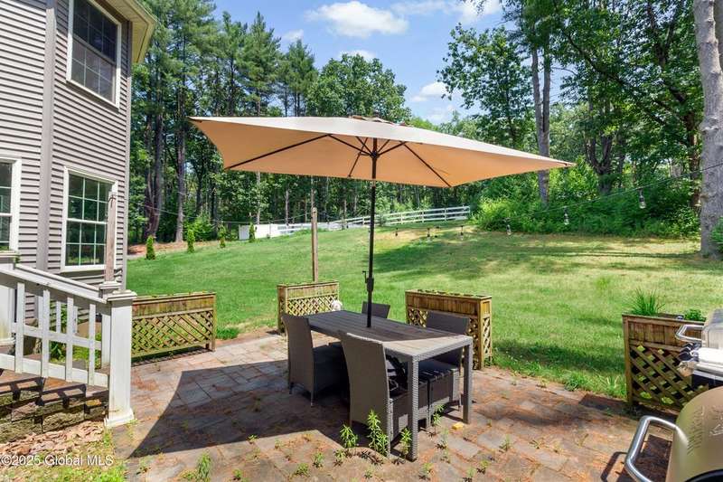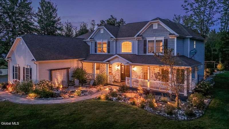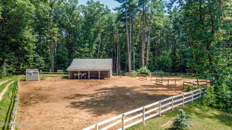 4-Acre equestrian estate 10 min to downtown. Close to Fish Creek & Saratoga Lake. 5-bd/4.5-bath in Burgoyne Estates. 9-ft ceilings, cherry HW floors & high-end doors. Designer kitchen w/ maple cabinets, SS appliances, granite countertops, island, breakfast nook, & separate coffee bar w/ wine cooler & reverse osmosis system. Great rm w/ wood FP & stone surround. Formal dining rm, family rm, & 1st-fl bdrm/office. Primary suite w/ gas FP, sitting area, separate his/her vanities, soaking tub, tiled shower, & walk-in closet. Guest bdrm w/ en-suite bath. Basement w/ egress window, 9-ft ceiling, wine room, & Sentry water filtration system. Paver patio w/ fire pit. Barn w/ 3 stalls, hayloft, water, electric & field spigot. Fenced pasture. Have 3 horses, or convert to pole barn entertainment spot!
