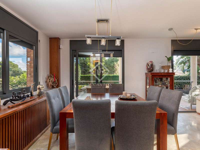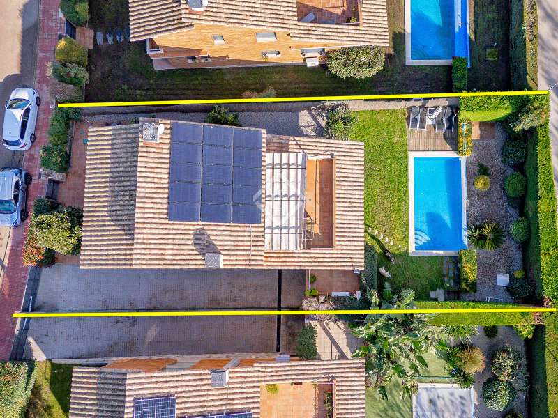 This beautiful villa is located in the exclusive residential area of Mas Vila, just a few minutes from the beach of Sant Antoni de Calonge, on the Costa Brava. The villa sits on a 508 m² plot , which has a private garden with fruit trees and a large swimming pool. The 304 m² construction is spread over three floors. Its perfect orientation allows you to enjoy the sun all day long, creating a warm and welcoming atmosphere at all times. To access the property, we cross a front terrace that leads to the day area, consisting of a bright living-dining room with a fireplace and direct access to a beautiful porch, garden and swimming pool. The large, fully equipped kitchen has a breakfast area and connects directly to the living room, for greater comfort. On this same floor there is a bedroom, currently used as an study , and a guest bathroom. On the upper floor , there is the night area, which houses three bedrooms with built-in wardrobes and two complete bathrooms. The main bedroom has a private bathroom and a large terrace. The other two double bedrooms share a full bathroom and one of them has access to a private terrace. The lower floor offers a large open-plan space that includes a cinema area, wine cellar and dining room, ideal for entertaining and enjoying the residents. In addition, it has a closed garage with capacity for two cars, a utility area and ample storage space. The exterior of the villa stands out for having several terraces, a garden surrounded by fruit trees and a large swimming pool, making it a perfect environment to enjoy the Mediterranean climate all year round. This villa is a unique property in a privileged location, close to the beach and in a quiet residential area, ideal for those seeking comfort and tranquility on the Costa Brava.