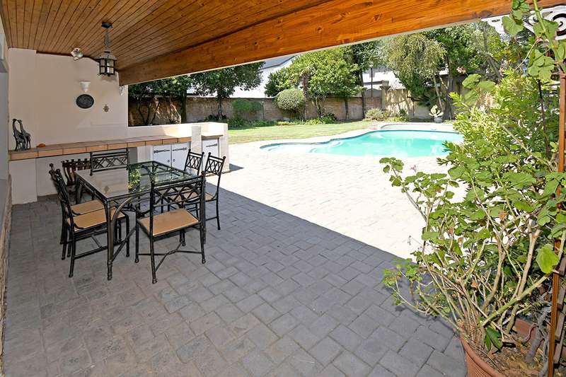 view by appointment. Solid home and sound investment in prestigious position. A warm character home offering 4 reception rooms for family gatherings, private dining, and casual entertaining with a central wood fireplace. Open plan kitchen, gas hob with separate scullery , walk in pantry and indoor separate laundry room. 4 well proportioned bedrooms, 2 modern full bathrooms. Master bedroom boasts dressing area, private study opening onto the tranquil garden with sparkling pool. Plus a 1 bedroom self contained cottage with it's private patio. 2 garages and ample guest parking. Additional features include, solar system, borehole, prepaid electricity meter, fibre connection. Situated in a quiet 24Hr access controlled road close to excellent schools.