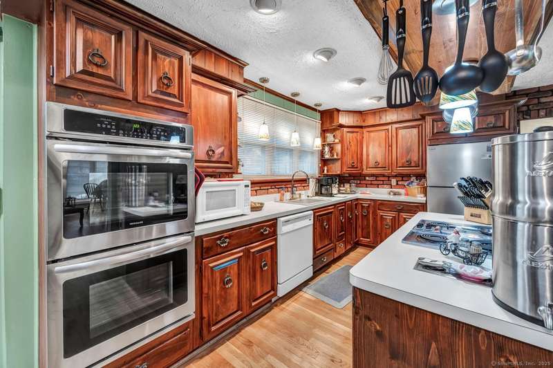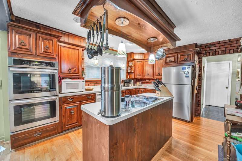 FALL in love with this beautifully maintained Cape Cod in the heart of Wethersfield! This original owner home offers so much. There are 2 first floor bedrooms and it also has an updated full bathroom for your convenience. The upper level has 2 more bedrooms that are a good size and room for a possible second bathroom. Lots of storage in one of the larger bedrooms upstairs. The kitchen boasts a large eat-in kitchen with a double oven, stainless steel refrigerator, an island and much more. Sliders open up to a beautifully landscaped backyard, deck and shed. Hardwood floors throughout. Newer Roof. Full basement with endless possibilities. Off of the kitchen is a den with a pellet stove. Close to major highways, restaurants, parks, schools, shopping and Pine Acres is right down the street! Don't forget to put this one on your list because it won't last!