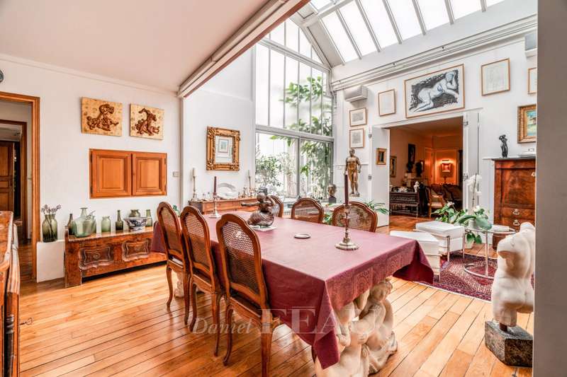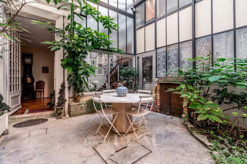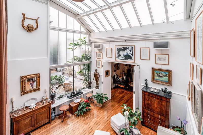 Sole Agent. This former artist’s studio is on the garden level and ground floor of a fine late 19th century building set at the bottom of a courtyard located a stone’s throw from Luxembourg Gardens. Benefiting from exclusive use of a 60 sqm courtyard and with the feel of a private house, it offers 160 sqm of floor space and 134.50 sqm of living space as defined by the Carrez Law including a drawing room, an extensively glazed living/reception room featuring a soaring ceiling, a kitchen, 3 bedrooms (two of which benefit from independent access and have a kitchenette, a shower room and a wc), and a bathroom with a wc. The basement comprises a utility room, a bathroom and a wc. A parking space.