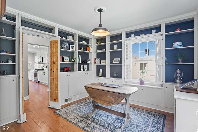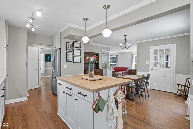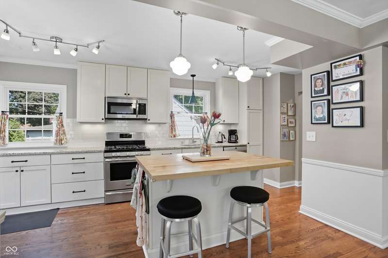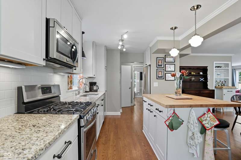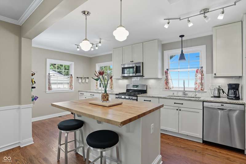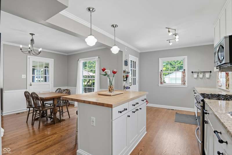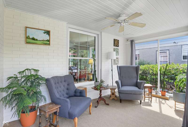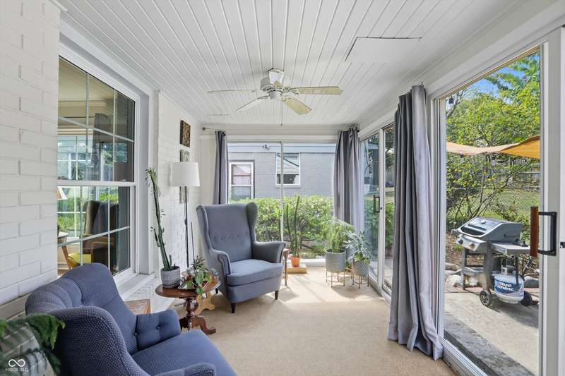 Canterbury Cape Cod charmer! Move-in ready! Bright & sunny main living area flows nicely to the dining room and updated kitchen, complete with crisp white cabinetry, granite countertops, SS appliances & island with butcher block counter plus room for extra bar-stool seating. 3 bedrooms plus main floor office/den with built-ins and recently updated bathrooms. Basement w/ finished full bath adds a wonderful extra living space or could be an additional bedroom. Enjoy morning coffee in the lovely three season sliding glass enclosed sun-room overlooking the fully fenced in backyard. 2 car garage. One block from the Monon Trail, 4 blocks to Canterbury Park, and short walk to Broad Ripple Ave & 54th St shops and restaurants like Mama Corollas, Half Liter, BRICS, The Brew Pub! Safe walking distance to Broad Ripple Middle School, School 55, Cathedral, or Christ the King.
