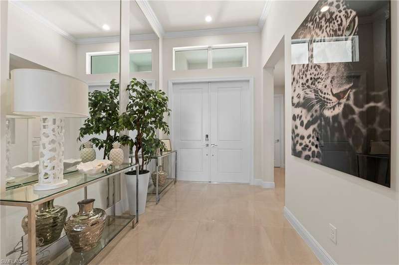 **Turnkey Annual Rental Available Now** (Open to a rental of minimum 6 months). Your dream home is awaiting, fully furnished and move-in ready with everything you need to make it your home. Located in the highly sought-after community of Azure at Hacienda Lakes. Built in 2021 by America's luxury home builder, Toll Brothers, this gorgeous waterfront single-family home is equipped with tasteful furnishings and luxury home upgrades, and has barely been lived in. Featuring 3 spacious bedrooms and a bonus room, 2.5 baths and a 2-car garage with storage shelving. The elegant foyer welcomes you through the double front doors with 12' high ceilings and greets you by the 13'4" high ceiling in the great room. 3' x 3' white polished tile floors are carried over the expansive great room, kitchen, and living room displaying tray ceilings. The extended gourmet kitchen is fully stocked and equipped with beautiful quartz countertops, white cabinets, an oversized kitchen island, elegant light fixtures,