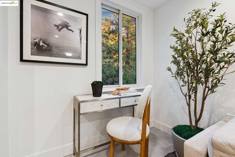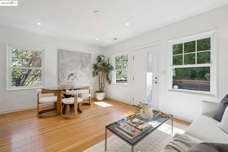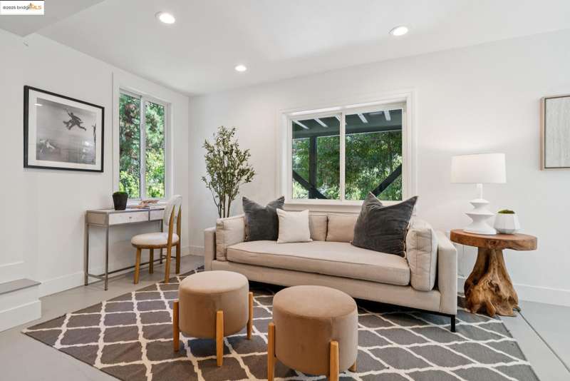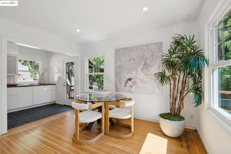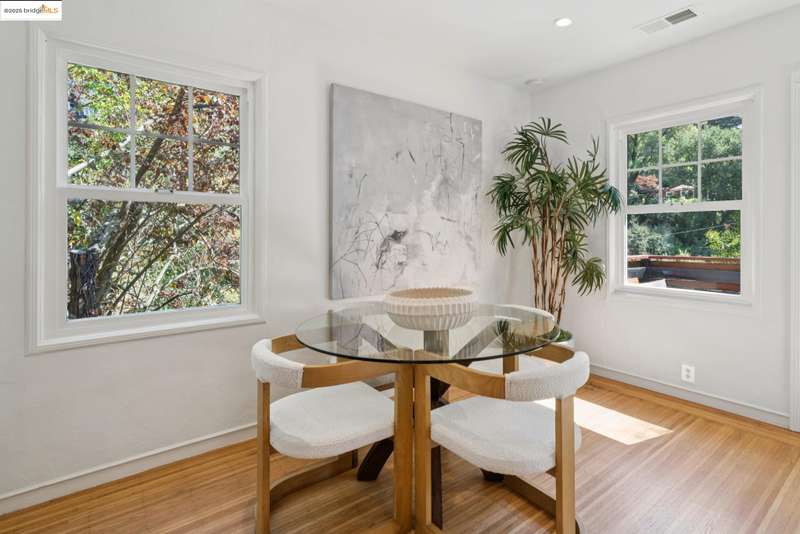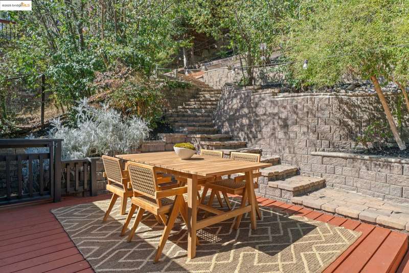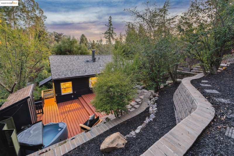 Situated in the heart of the highly sought-after Montclair/Oakland Hills, this sun-drenched home blends original charm with thoughtful updates. Enjoy classic matchstick oak floors, dual-pane windows with a modern kitchen and bathrooms. Upstairs, you'll find two bright bedrooms and a full bath with an open living/dining/kitchen layout. Downstairs, the fully appointed studio offers incredible flexibilitycomplete with its own kitchen, bathroom, living area, and a separate entranceperfect for guests, extended family or a home office. The expansive outdoor space invites you to take in lovely serene views from multiple vantage points. Seamless indoor-outdoor living is made easy with a spacious back deck, relaxing hot tub, and terraced yard on a generous lot. A one car garage offers off street parking and additional storage. Located just one block from transportation to San Francisco and moments from Montclair Village, you'll have easy access to the Sunday farmers' market, the 1930 storybook library, chic shops, grocery stores, parks, schools, tennis courts, and a variety of exciting culinary options. An urban escape where timeless design and modern comfort come together in perfect harmony.