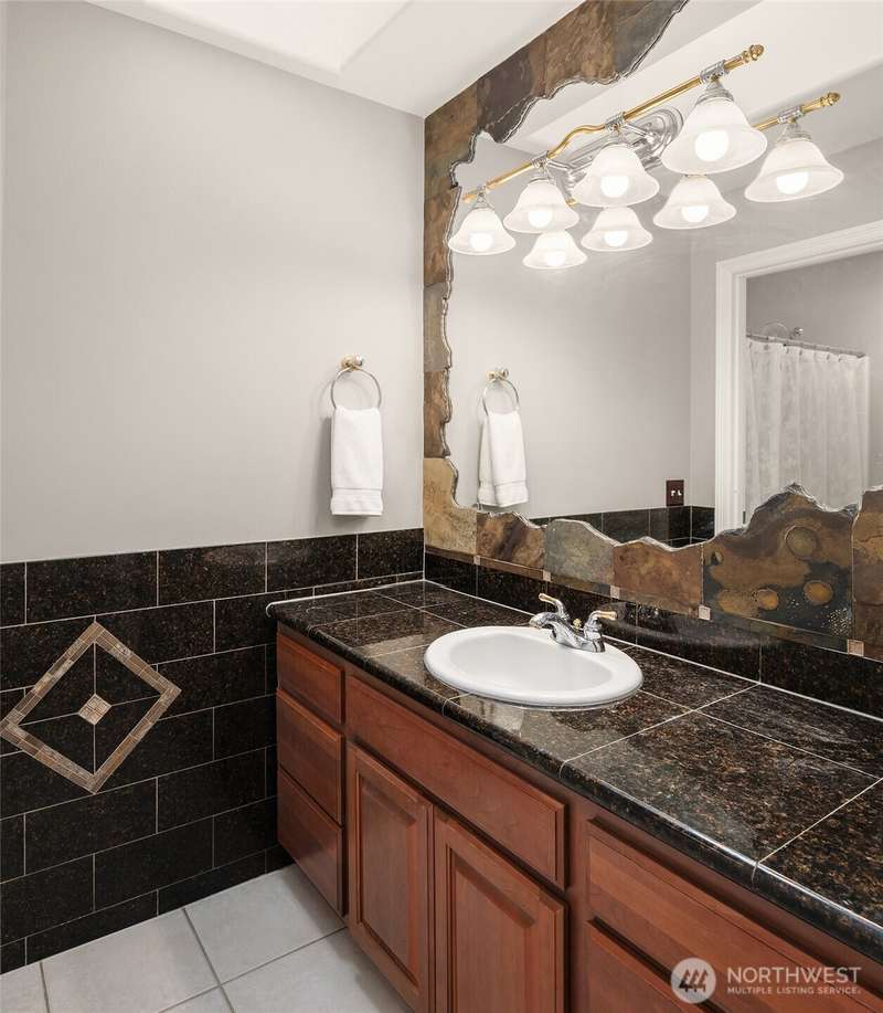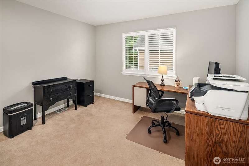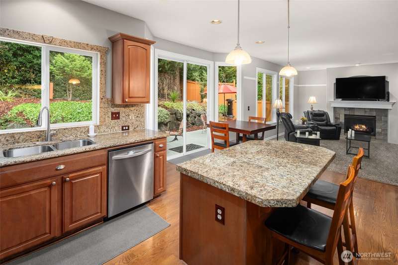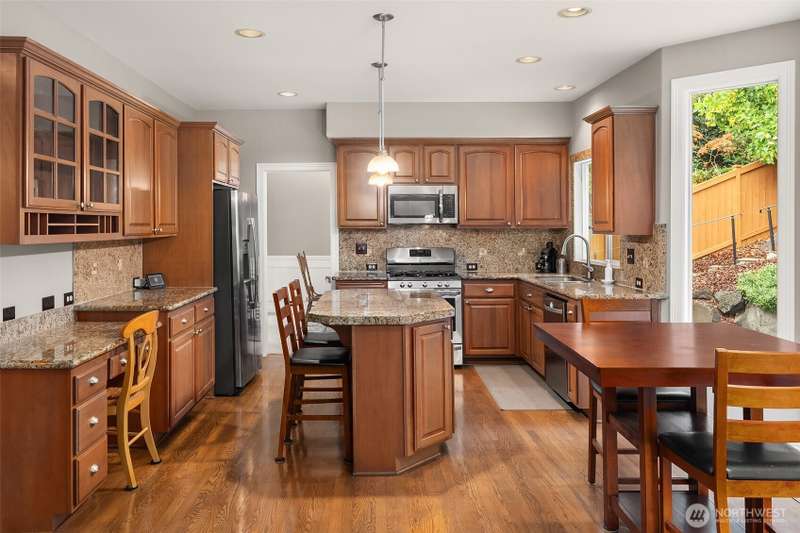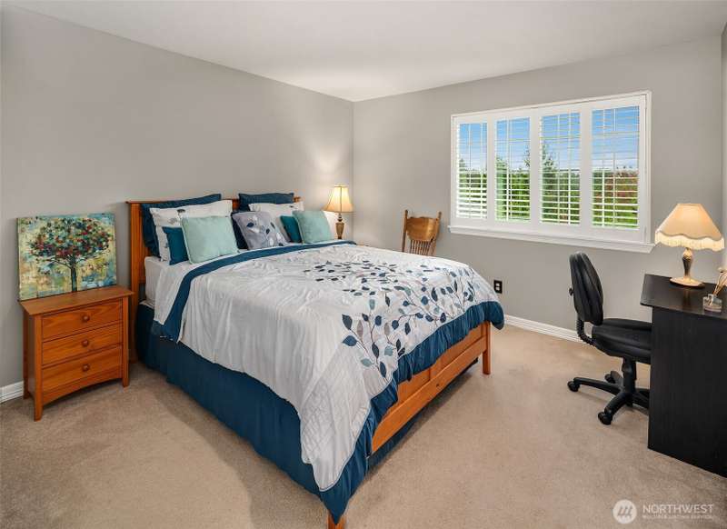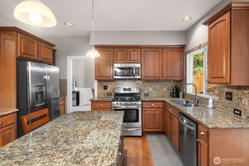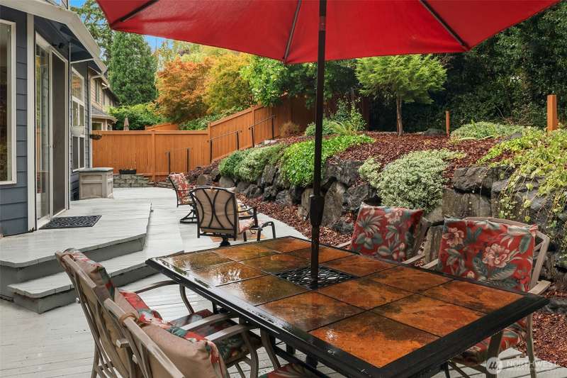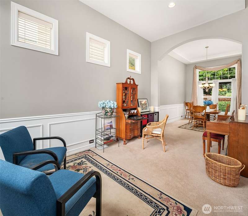 Tucked at the end of a tranquil cul-de-sac, this 5 bed, 2.75 bath home offers rare privacy and serenity. Bedroom and adjacent 3/4 bath for main floor living! The backyard is a garden oasis with wraparound deck, painted fence, stone pathway, and lush landscaping. Inside, soaring 17’ ceilings, wainscoting, French doors, and grand staircase create timeless elegance. The refreshed interior features slab granite kitchen counters, custom stonework in baths, and vaulted primary with fireplace and jetted tub. Recent updates include new roof, skylights, paint, carpet, plumbing, furnace, water heater, and washer/dryer. Central vac, built-ins, and a 3-car garage add comfort. Award-winning Fife schools, public transit, and 5 Mile Lake are nearby.