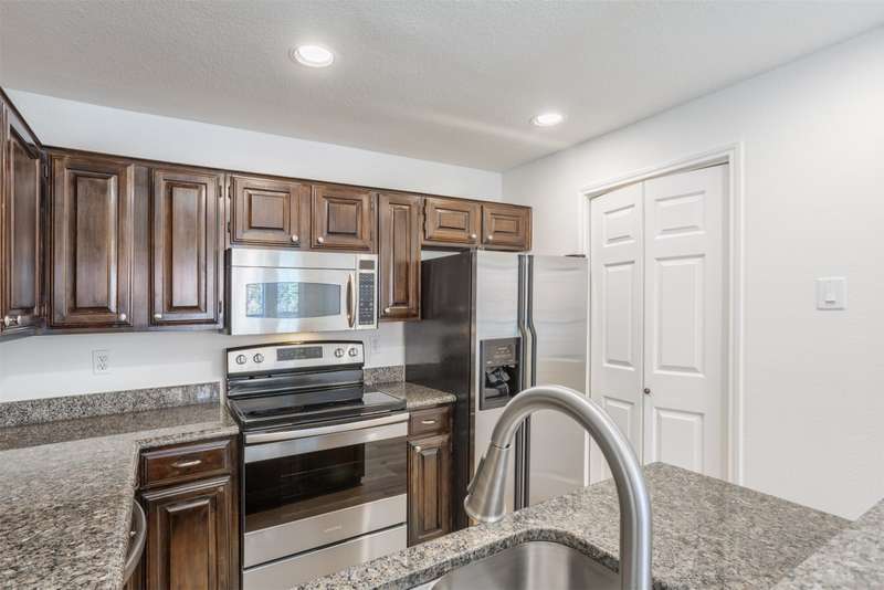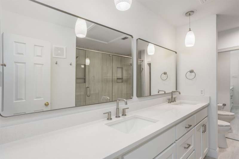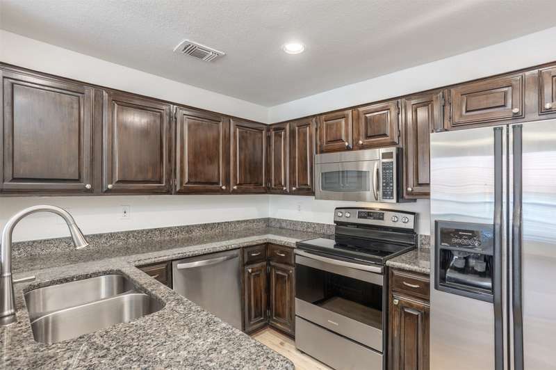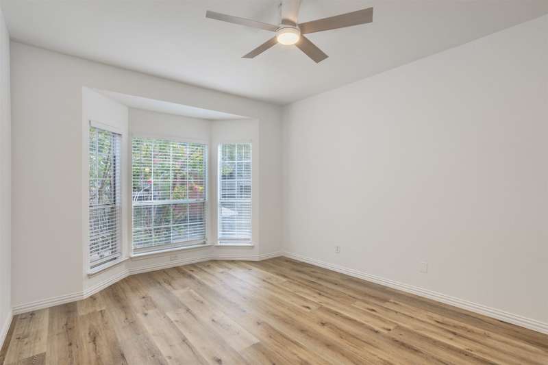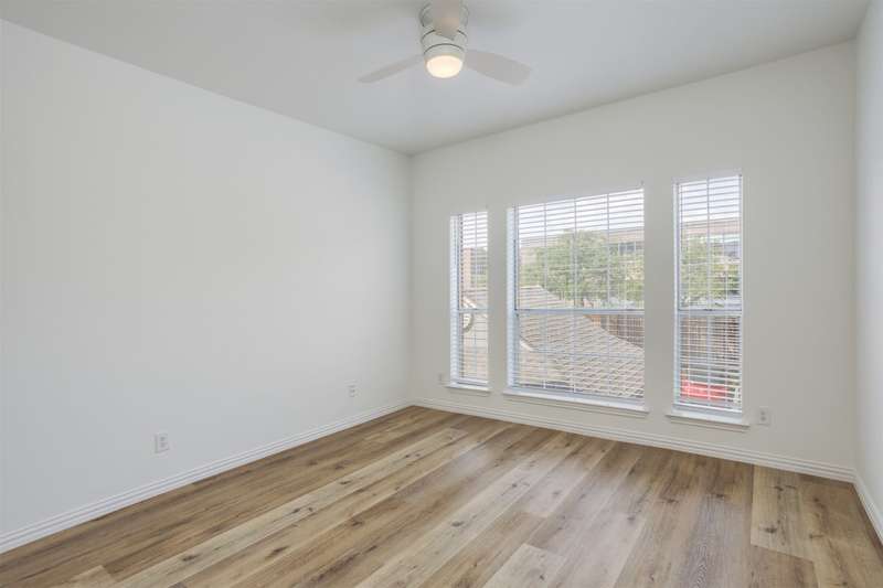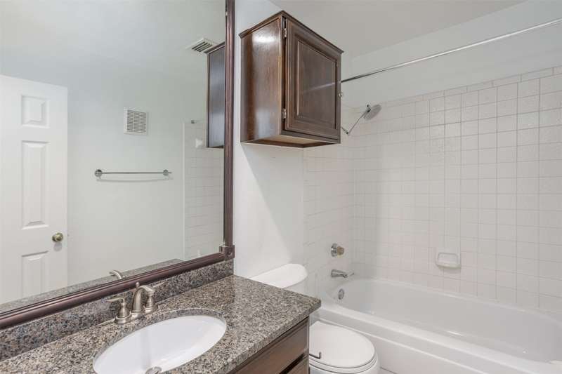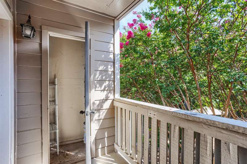 Discover this beautifully updated 2-bedroom, 2-bathroom, second-floor condo in a gated community offering both security and convenience. Step inside to find gorgeous wood flooring that flows throughout the home and a primary suite with a spa-like double shower you may never want to leave! The home comes with a full-size washer and dryer, new lighting and fresh paint. The private patio overlooks the pool, making it an ideal spot for a sunrise coffee or a sunset wine! The complex offers 2 sparkling pools, a fitness room, and clubhouse for your enjoyment. Williamsburg Condos is gated and a highly sought-after complex due to its security, location south of LBJ, and its proximity to Dallas' best restaurants and stores.