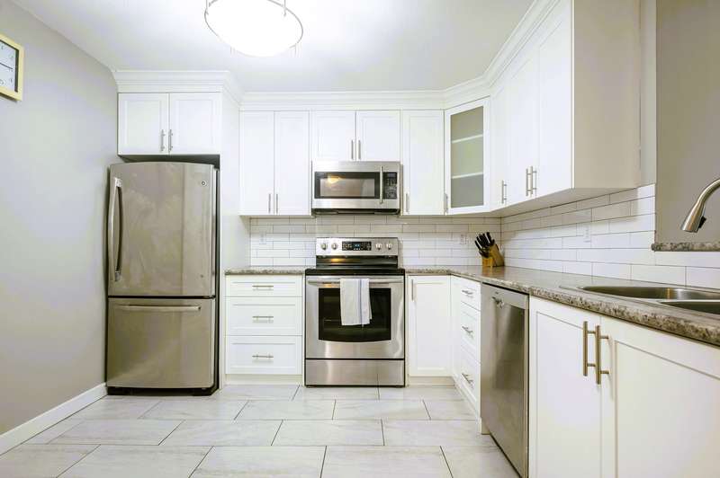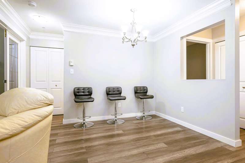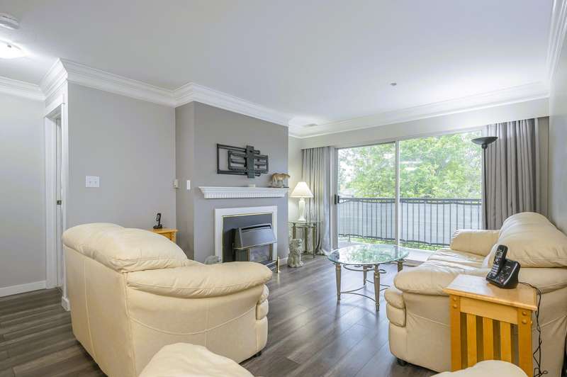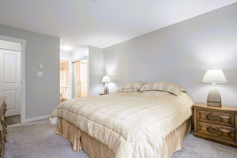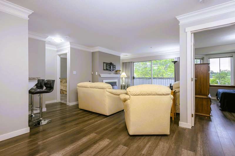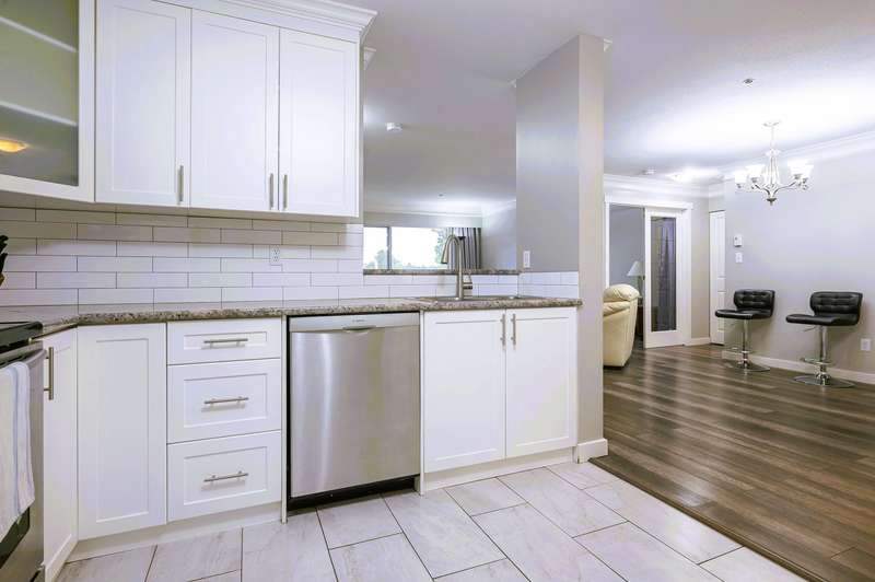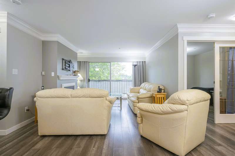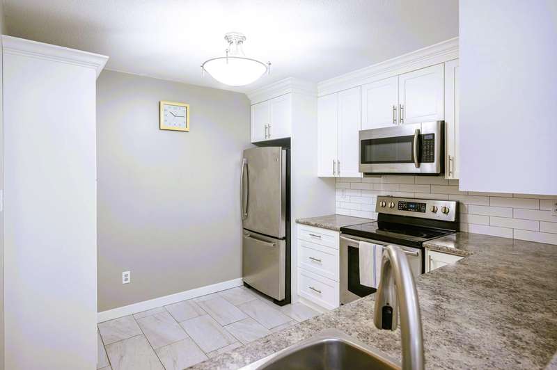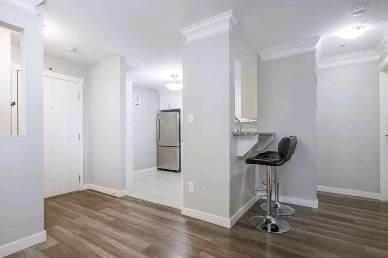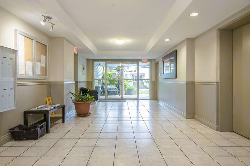 Welcome to Robert’s Court! This bright, top-floor, south-facing 2 bed, 2 bath condo offers 1,026 sq. ft. of well-designed living space. Enjoy an open layout, updated kitchen with stainless appliances, white cabinets, and subway tile backsplash. Bedrooms are on opposite sides for added privacy, with a 4-piece ensuite in the primary. Crown moulding, a large laundry room, and extra storage complete the home. Building amenities include a gym and social lounge. Steps to Fraser Hwy, transit, shopping, parks, schools, and Kwantlen University. Pet-friendly - 1 dog (max 18kg at maturity) and 1 cat, or 2 cats. A great start for first-time buyers!