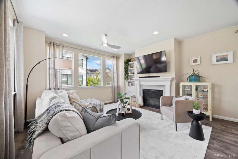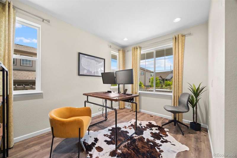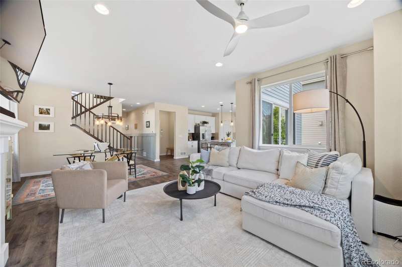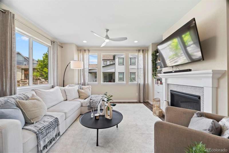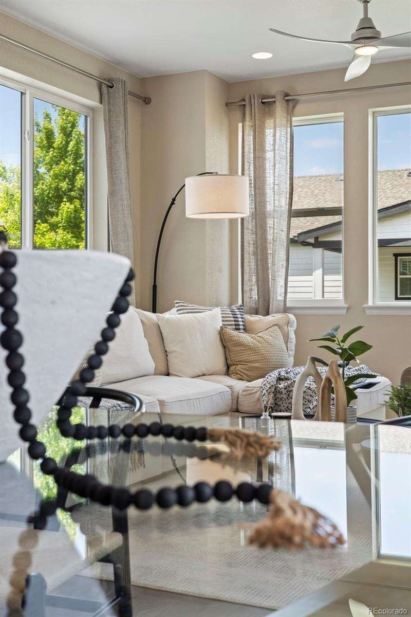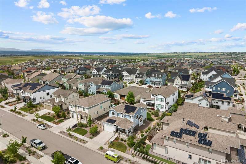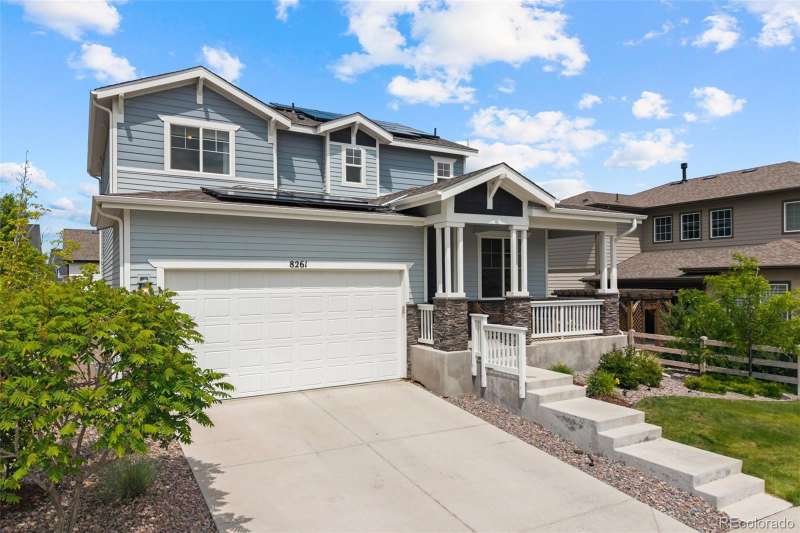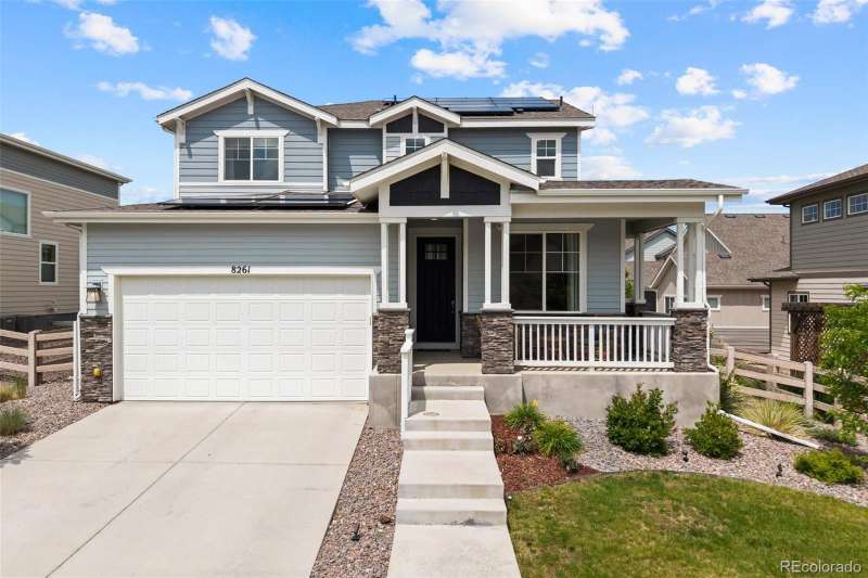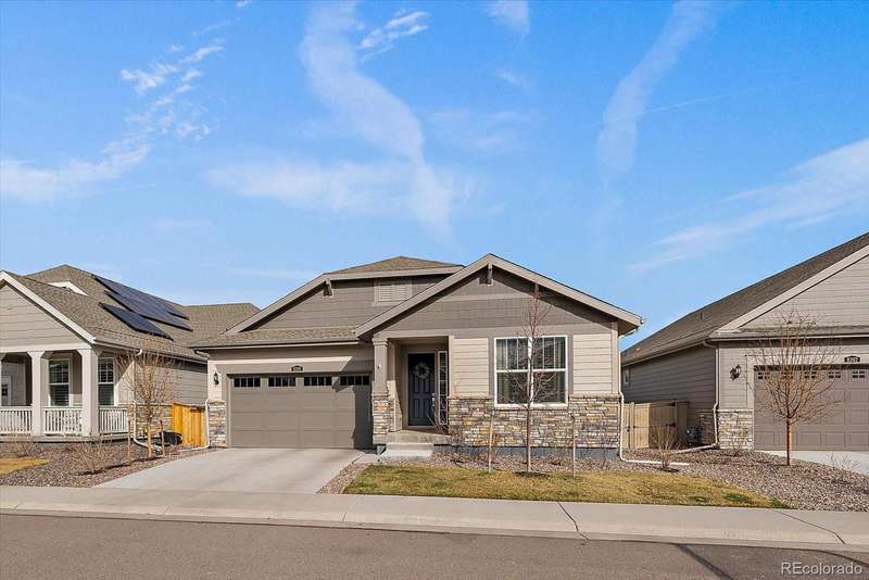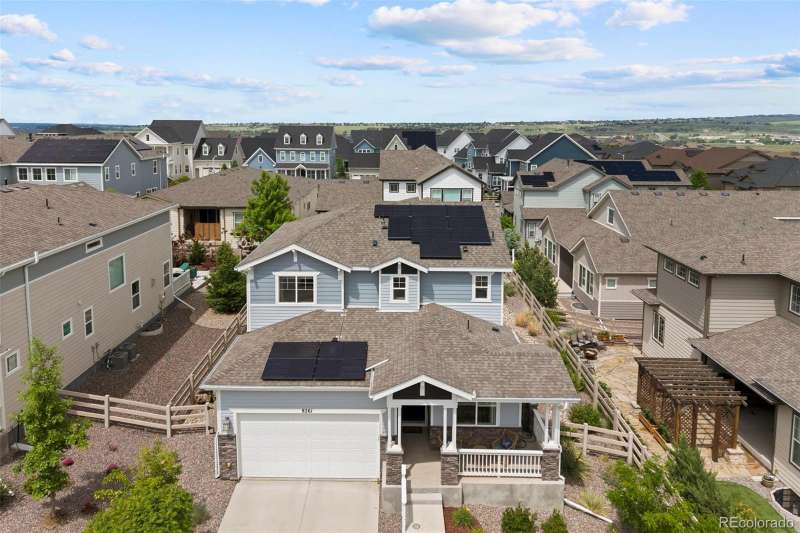 Welcome to this stunning former model home in the highly sought-after Sterling Ranch neighborhood! This beautifully designed home features a spacious layout, lots of natural light, and modern finishes throughout. The main floor features a cozy family room with a gas fireplace and custom built-ins, dining area, a convenient powder room, and a large front office. The upgraded kitchen features stainless steel appliances, quartz countertops, an oversized island, and a walk-in pantry. Step outside to the beautifully landscaped backyard with a patioideal for relaxing, and entertaining. Upstairs, the spacious primary suite includes a luxurious 5-piece bath and a generous walk-in closet. Two additional bedrooms, a full bathroom, a convenient upstairs laundry room, and a versatile loftcomplete the upper level. The full basement is ready for your personal touch and offers plenty of room to expand. Additional highlights include: Paid-off solar panels for instant energy savings, 220V outlet in the garage for EV charging, Smart home system and built-in surround sound, upgraded lighting and ceiling fans throughout, extended 2-car garage with additional storage space. Set within the prestigious Sterling Ranch community, residents enjoy an unmatched lifestyle with access to a coffee shop, brewery, sports courts, several miles of scenic trails and open space, a resort-style pool, a state-of-the-art recreation center, fitness center, and an exclusive clubhouse. BONUS: VA assumble loan option, Offering buyers a $4,500 credit to use toward a rate buy-down or closing costs with the preferred lender! Dont miss the opportunity to call this beautiful home yours!