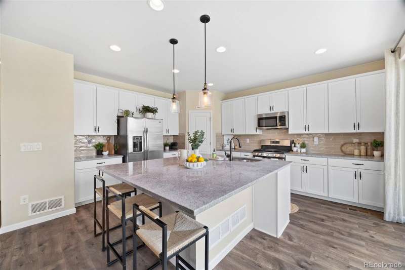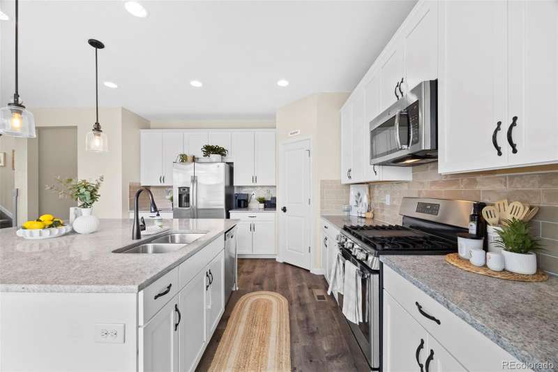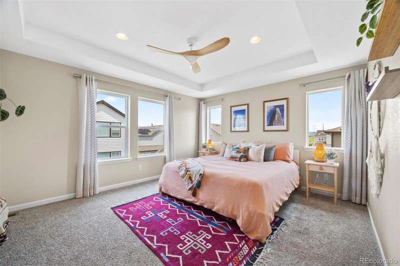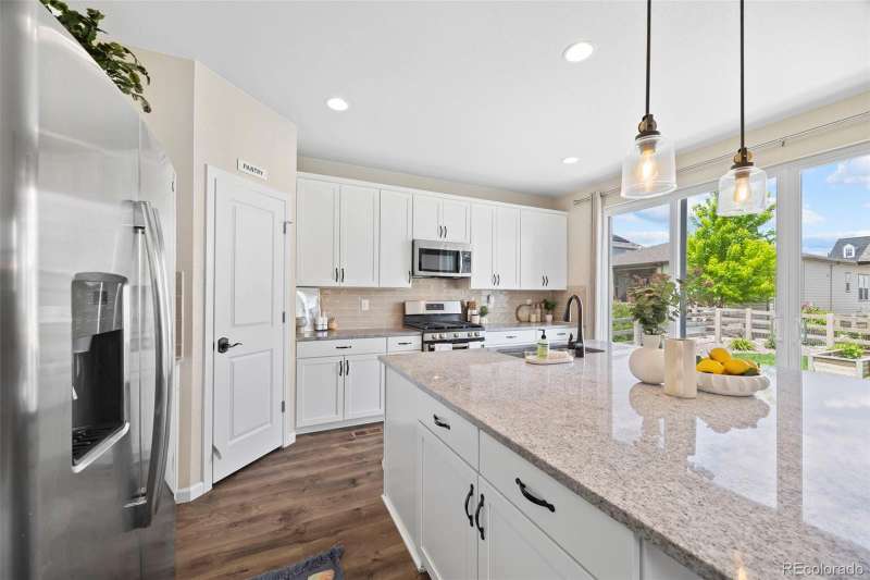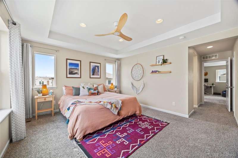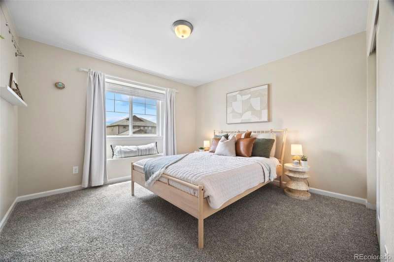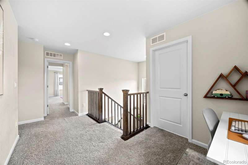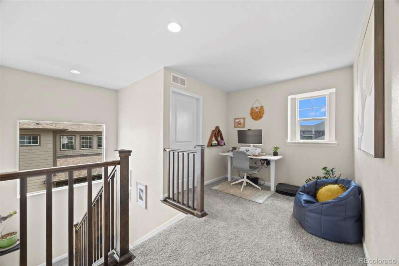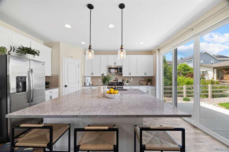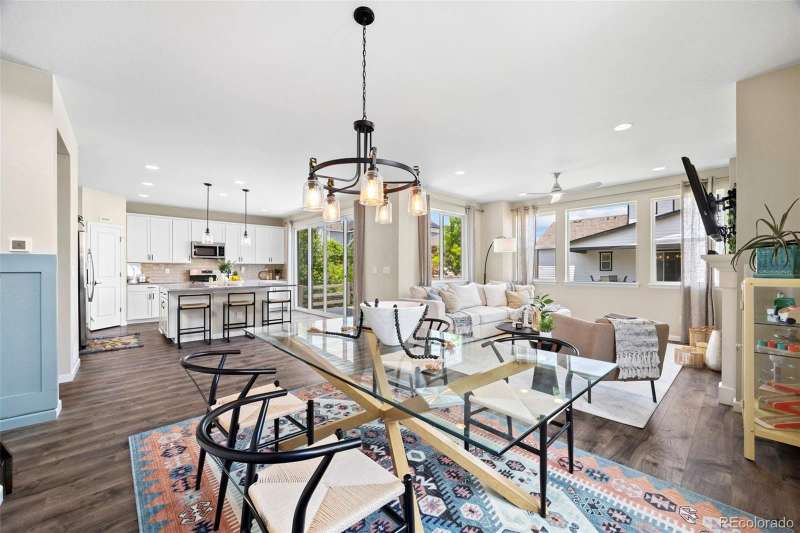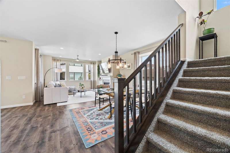 Welcome to this stunning former model home in the highly sought-after Sterling Ranch neighborhood! This beautifully designed home features a spacious layout, lots of natural light, and modern finishes throughout. The main floor features a cozy family room with a gas fireplace and custom built-ins, dining area, a convenient powder room, and a large front office. The upgraded kitchen features stainless steel appliances, quartz countertops, an oversized island, and a walk-in pantry. Step outside to the beautifully landscaped backyard with a patioideal for relaxing, and entertaining. Upstairs, the spacious primary suite includes a luxurious 5-piece bath and a generous walk-in closet. Two additional bedrooms, a full bathroom, a convenient upstairs laundry room, and a versatile loftcomplete the upper level. The full basement is ready for your personal touch and offers plenty of room to expand. Additional highlights include: Paid-off solar panels for instant energy savings, 220V outlet in the garage for EV charging, Smart home system and built-in surround sound, upgraded lighting and ceiling fans throughout, extended 2-car garage with additional storage space. Set within the prestigious Sterling Ranch community, residents enjoy an unmatched lifestyle with access to a coffee shop, brewery, sports courts, several miles of scenic trails and open space, a resort-style pool, a state-of-the-art recreation center, fitness center, and an exclusive clubhouse. BONUS: VA assumble loan option, Offering buyers a $4,500 credit to use toward a rate buy-down or closing costs with the preferred lender! Dont miss the opportunity to call this beautiful home yours!