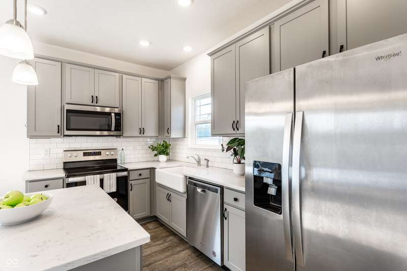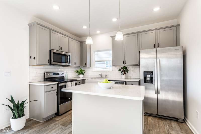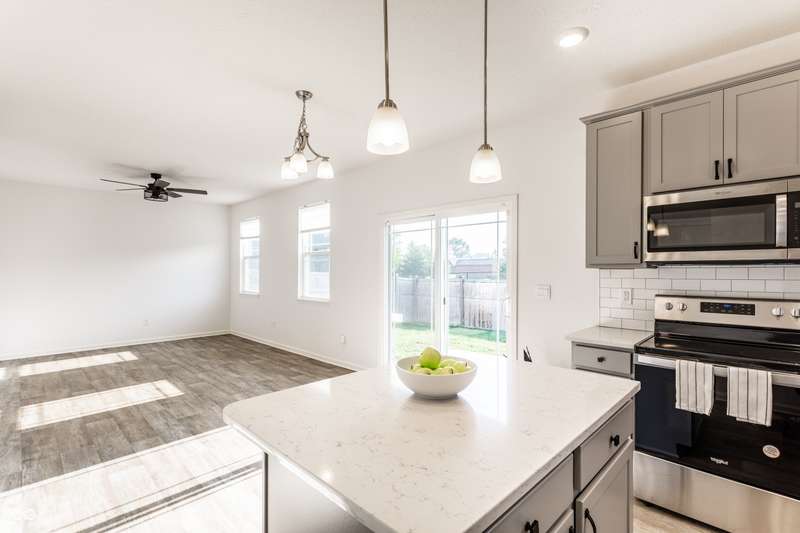 Feast your eyes on this single-family residence in tip-top shape, just waiting for someone to make it their own happy place! This DR Horton Belmont floorplan features an expansive island begging you to roll out cookie dough or arrange a cheese board masterpiece. With quartz countertops and subway tile backsplash, imagine whipping up your signature dish in this stylish space. With 1,728 square feet of living area spread across two stories, this home offers three bedrooms and two full bathrooms, plus a half bathroom. A laundry room adds an extra layer of convenience to your daily routine, while the open floor plan encourages easy living and a breezy atmosphere. The primary bathroom offers a tiled walk-in shower, a private spa experience right at home. A walk-in closet offers generous space for your wardrobe. Enjoy a breath of fresh air on the front porch or step out into the fenced backyard. Nestled in a residential area, this home provides a sweet slice of suburban serenity. Built in 2021, this home is practically brand new, close to schools, interstates, with easy access to downtown. Come take a look for yourself at this gem - ready to spark joy and provide a cozy backdrop for your life's adventures. Why wait for new construction, when this home is ready for you!