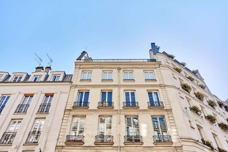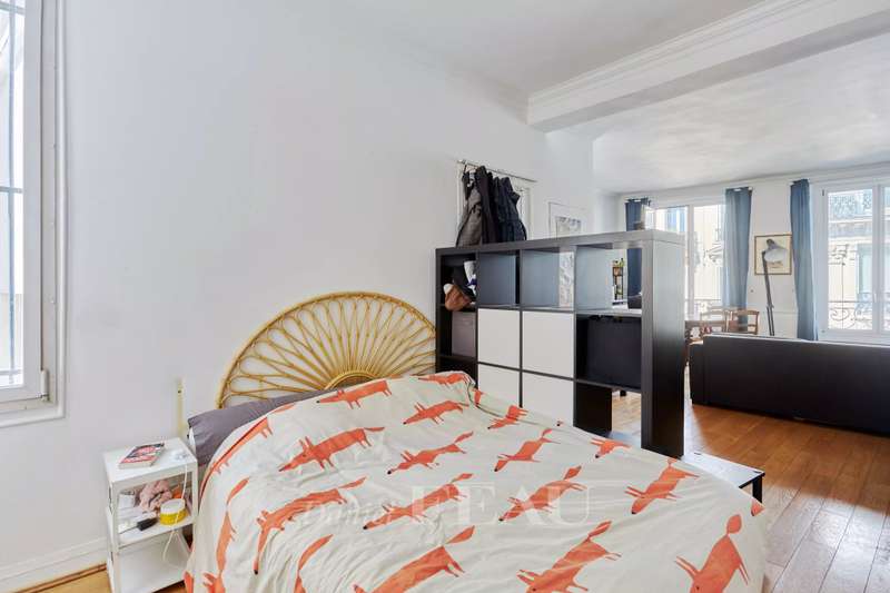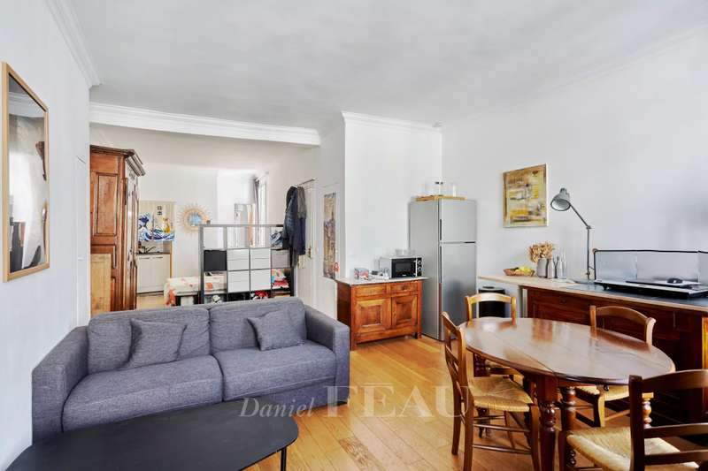 Odeon neighbourhood. This dual-aspect studio apartment bathed in sunshine is on the 3rd floor of a fine period building. Offering 37 sqm of living space, it comprises a spacious living room featuring over 3-metre high ceilings, a kitchenette, a bedroom area, and a shower room with a wc. It would be possible to create a separate bedroom. Cellar. Refurbishment is required. The building is not equipped with a lift.