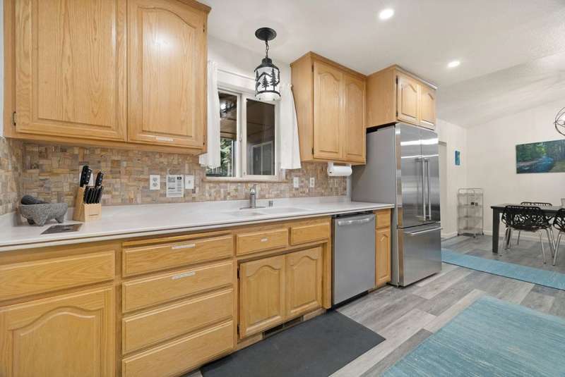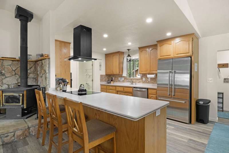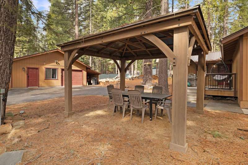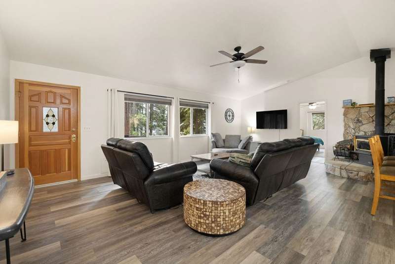 Lake living with lake views! This wonderful home sits nestled on the peninsula of Lake Almanor within a short distance to the marina, restaurants, and shopping. The main house comes equipped with three bedrooms, two full baths, and features updated vinyl wood flooring, updated electrical fixtures, vaulted ceilings, walk in closets, woodstove, synthetic rear deck, central heating and cooling. The detached ADU features a new kitchenette with its own full bath, full RV hookups, and separate garage! Behind the main house the detached garage comes with its own dedicated game room for fun with the whole family! There is even a whole house generator with auto transfer switch and two hookups for EV charging. The home also has a successful rental history to top it off. With all these amenities this one wont last long!