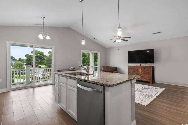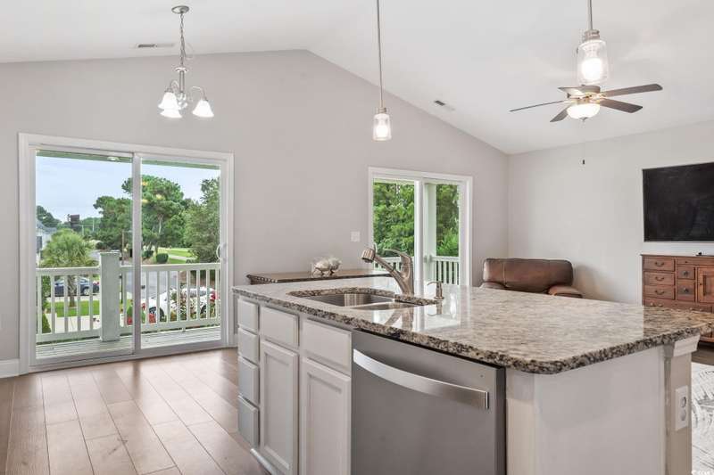 Open the door to your dream home in the highly sought-after Kayak Kove community! Nestled along a stunning 28-acre lake, perfect for kayaking, paddle boarding, or even fishing this home offers the ideal blend of comfort and coastal living. The first level features 2 bedrooms, a full bath, and laundry for everyday convenience. Upstairs, you’ll find a bright, open floor plan with a spacious living and dining area, ideal for entertaining. The kitchen is equipped with stainless steel appliances, granite countertops, a work island with a breakfast bar and ample storage. Step out onto the private balcony to sip your morning coffee or unwind with an evening drink while enjoying the beautiful lake views. The master suite is a true retreat, offering a large bath, linen storage, and a generous walk-in closet. Additional highlights include a 2-car garage, abundant storage throughout, and yes, even your Golf Cart is allowed so load up and head to the beach that is only 2.5 miles away. This location is hard to beat, you’re only minutes from the famous Murrells Inlet Marsh Walk, award-winning golf courses, shopping, and the Grand Strand’s best restaurants. This home is a must see so call today for your private showing!