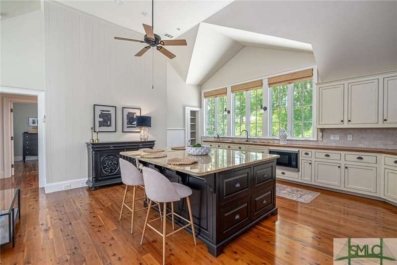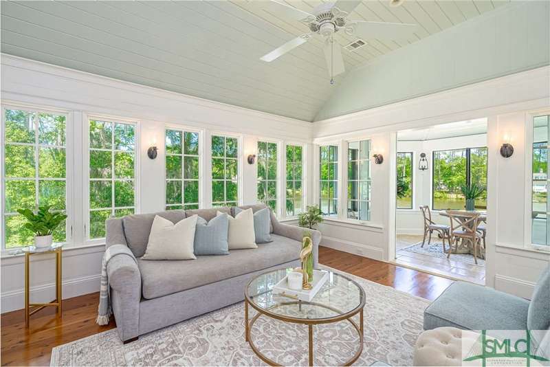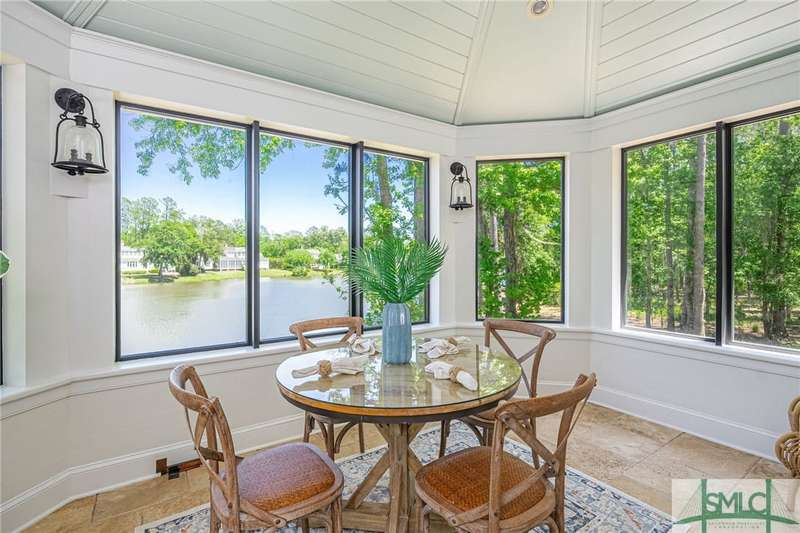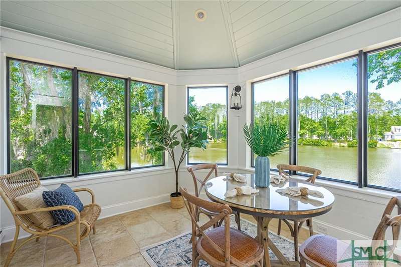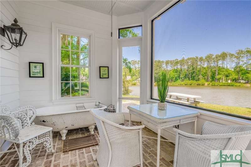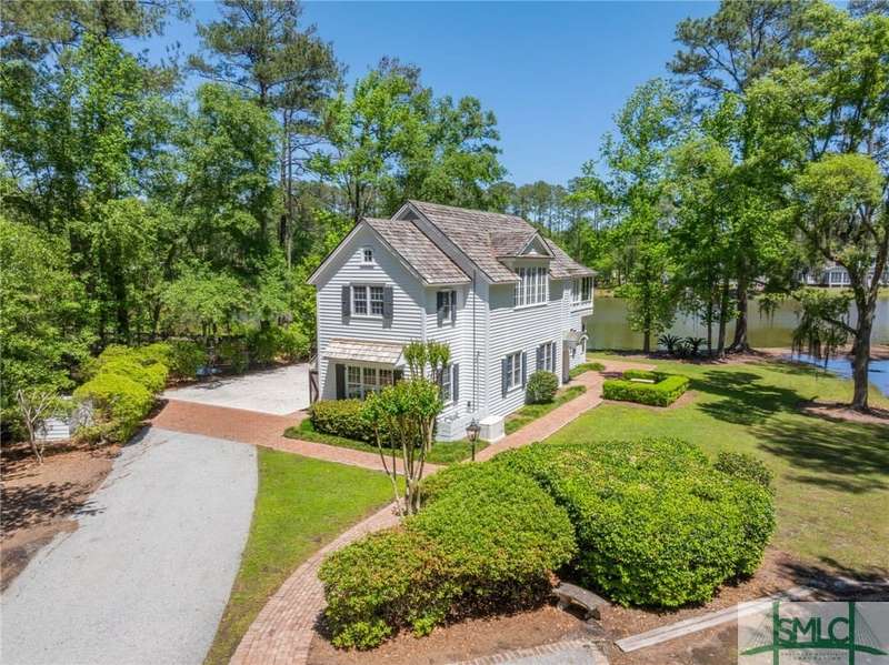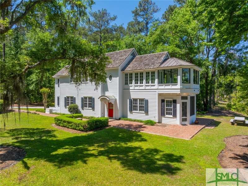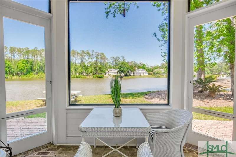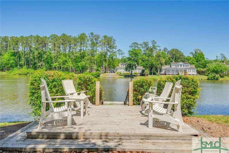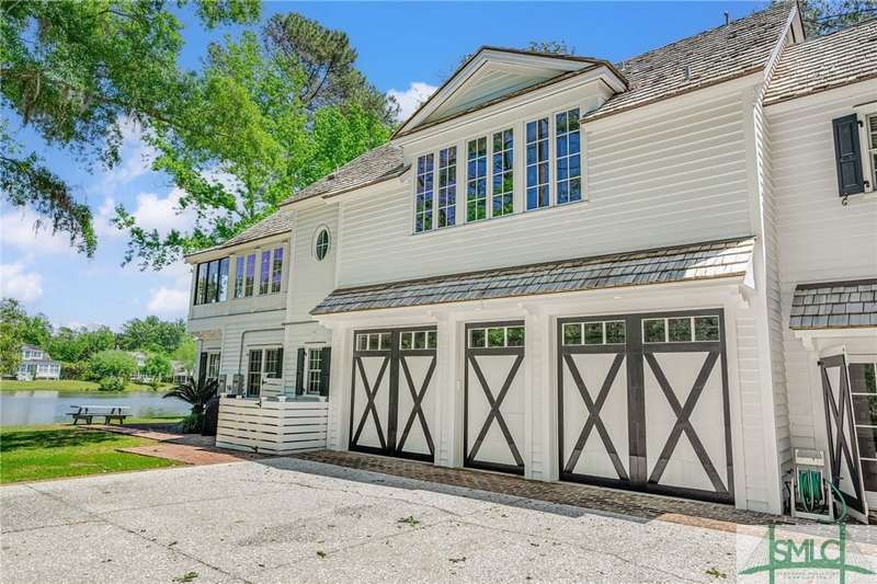 Charming low country retreat in the esteemed Ford Field and River Club! This 2-bed, 2-bath home sits on over 2 acres of picturesque land, offering a serene and private setting. The main floor of this home boasts a 2-car garage with cart space. Adjacent to the garage, you'll find an office space and a cozy bedroom with an attached bath and private screened porch. As you step into the main living areas upstairs, you'll be greeted by a bright, airy, and beautiful ambiance. The great room is a highlight, surrounded by windows and seamlessly connecting to the sunroom with spectacular views of Lake Dye. The kitchen features a large island with seating, ample counter space, and plenty of cabinets for storage. The primary ensuite features a walk-in rain shower and custom cabinetry. You'll be within walking distance of amenities such as the Lake Dye Grill, Fitness Barn, and Clubhouse, making it easy to stay active and connected to the community. Historic Savannah is just a 20-min drive away!
