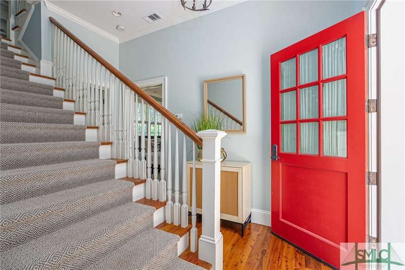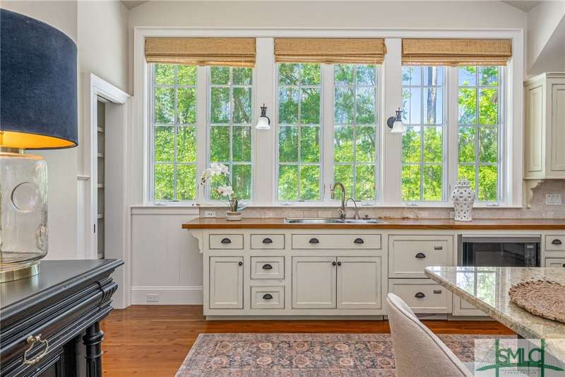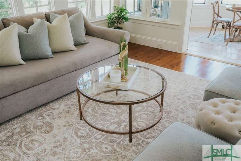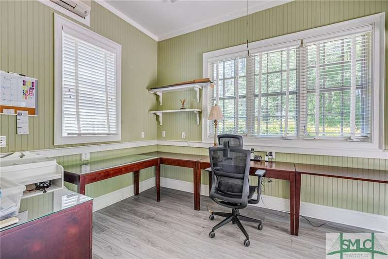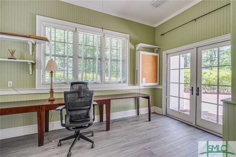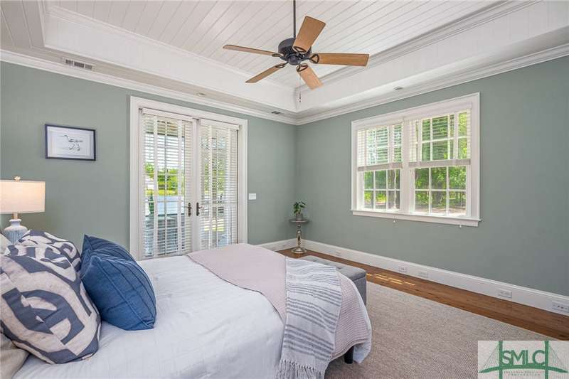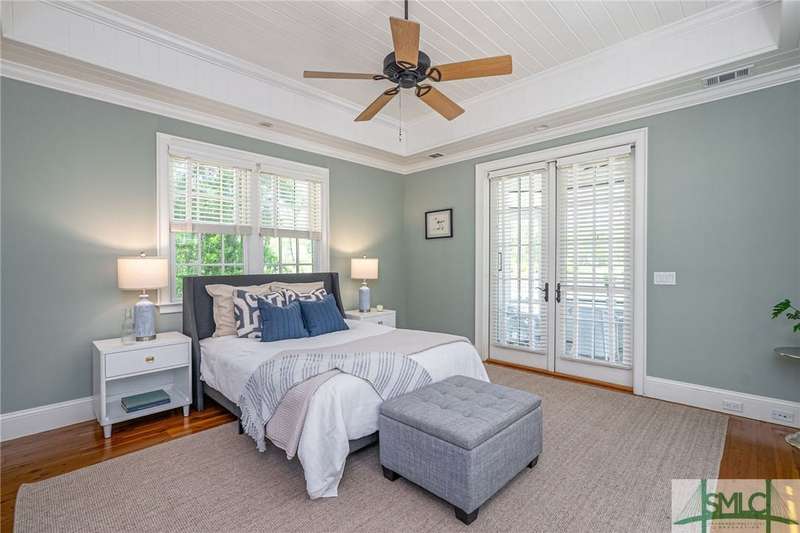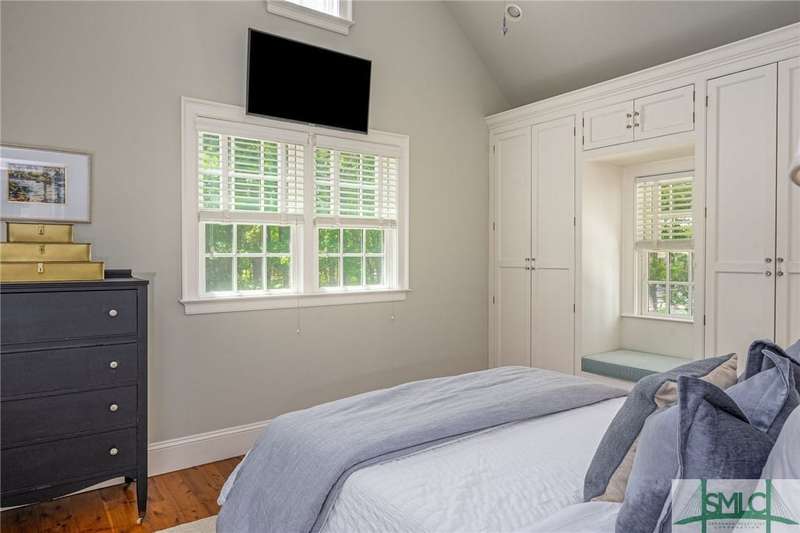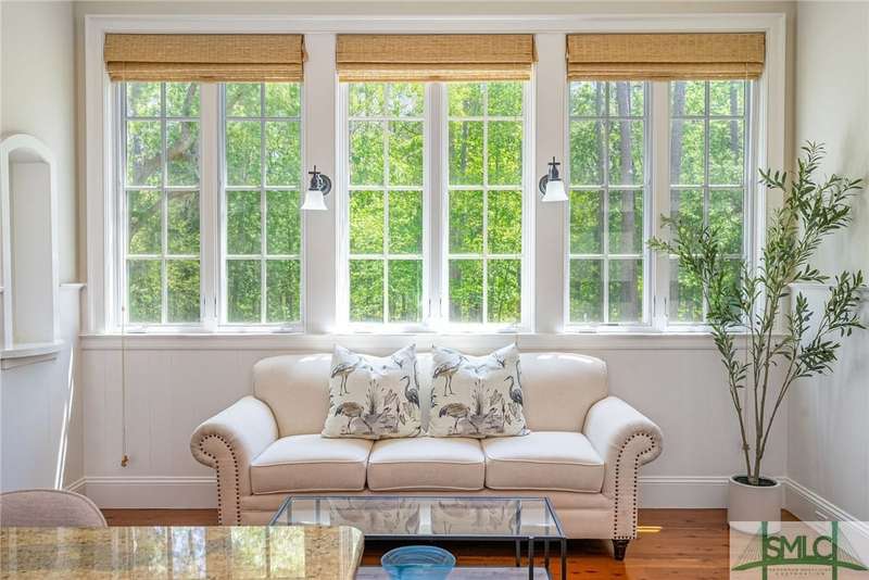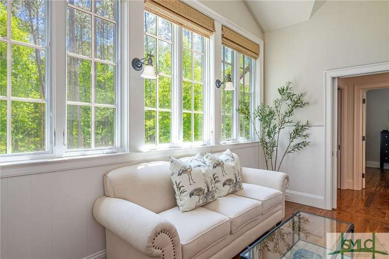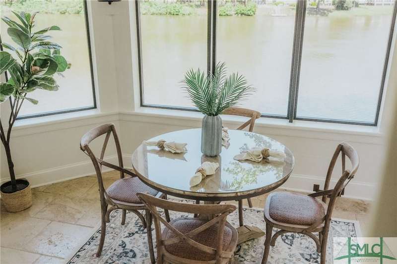 Charming low country retreat in the esteemed Ford Field and River Club! This 2-bed, 2-bath home sits on over 2 acres of picturesque land, offering a serene and private setting. The main floor of this home boasts a 2-car garage with cart space. Adjacent to the garage, you'll find an office space and a cozy bedroom with an attached bath and private screened porch. As you step into the main living areas upstairs, you'll be greeted by a bright, airy, and beautiful ambiance. The great room is a highlight, surrounded by windows and seamlessly connecting to the sunroom with spectacular views of Lake Dye. The kitchen features a large island with seating, ample counter space, and plenty of cabinets for storage. The primary ensuite features a walk-in rain shower and custom cabinetry. You'll be within walking distance of amenities such as the Lake Dye Grill, Fitness Barn, and Clubhouse, making it easy to stay active and connected to the community. Historic Savannah is just a 20-min drive away!