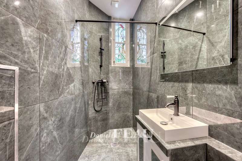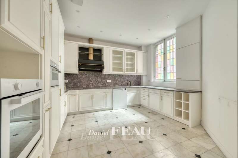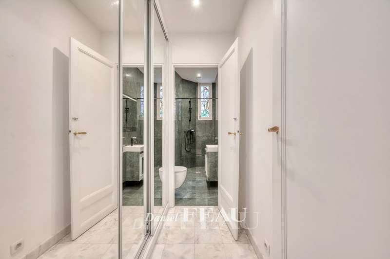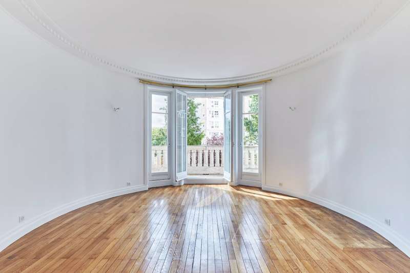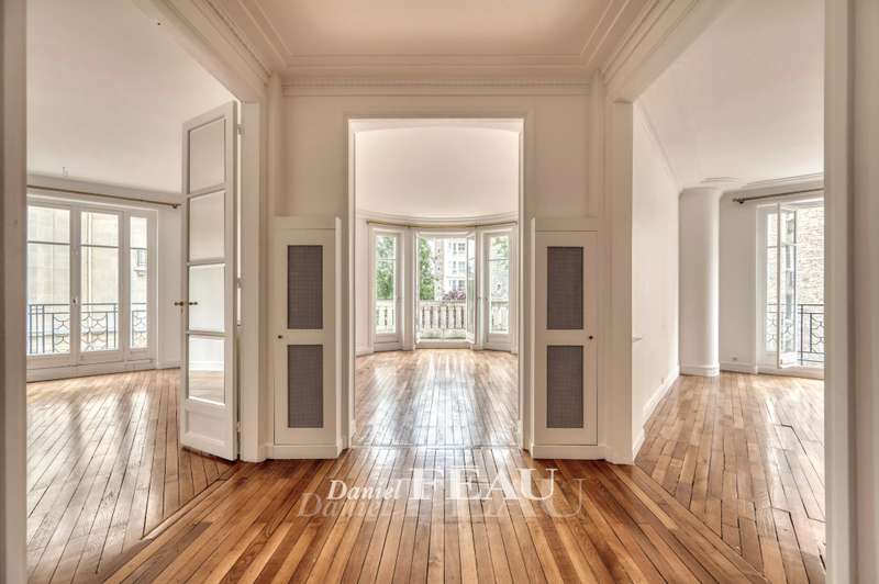 Sole Agent. This elegant apartment is on the 2nd floor of a perfectly maintained 1930s freestone building with luxurious common areas in a peaceful location between Place Rodin and avenue Mozart in the immediate vicinity of Passy Village, the shops, the transport networks and the schools. Offering 159.04 sqm of living space as defined by the Carrez Law, it includes a rotunda living/reception room opening onto a balcony, a dining room, a spacious separate kitchen with dining facilities, two bedrooms with shower rooms opening onto a continuous balcony, a third bedroom, a shower room with a wc, and a dressing room. A second wc would be possible. Ample fitted storage space. Period features include 2.97 metre high ceilings with mouldings, parquet flooring, and wide floor-to-ceiling windows. South-facing, the apartment is particularly bright, and enjoys open views over leafy greenery. With a secure cellar benefiting from lift access, and two 8th floor storage rooms. The building has a caretaker, and is equipped with a door-entry code and an intercom.
