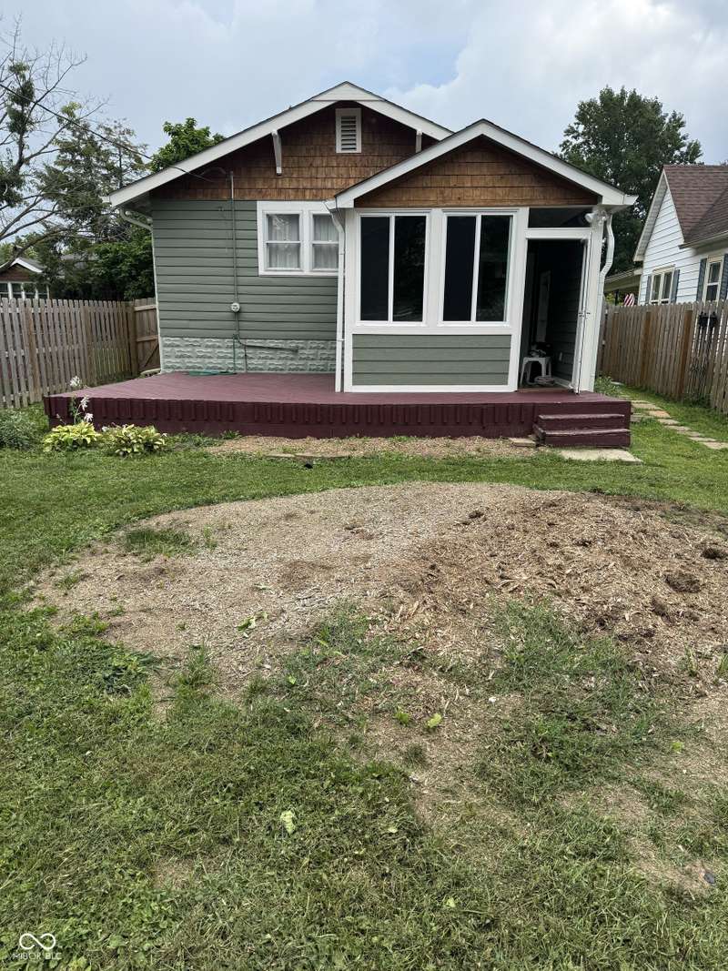 Curb appeal galore! This 1920 Craftsman has been meticulously maintained. Features original hardwood floors, built-in cabinets, and arched doorways. Cozy atmosphere with Jack and Jill bathroom plan plus an additional half-bath for guests. Thoughtfully planned kitchen layout with new dishwasher. Spacious basement makes a great workshop or future living space. Relaxing three season room looks out over a large, fully fenced backyard. Located steps from the University of Indianapolis campus.