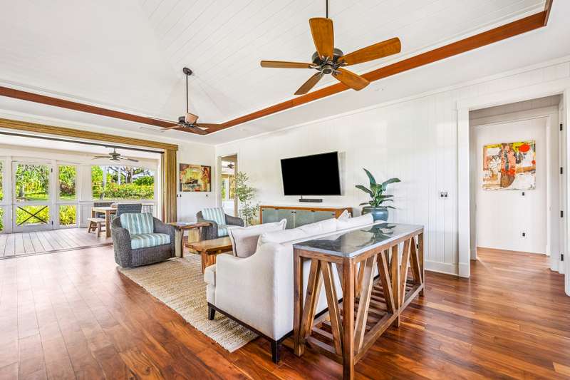 5033 Lau Nahele compound features impeccable craftsmanship, is being offered fully furnished, and is move-in-ready or poised to vacation rent. 7-day renting is permitted by the County of Kauai and the Kukui'ula community association by-laws.