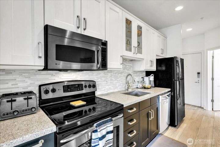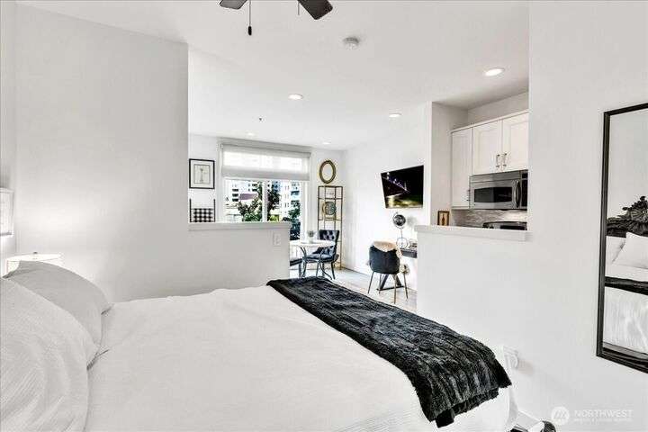 Turnkey & Fully Furnished Belltown Alcove Studio! 4th-floor in the heart of Belltown, just steps from the new waterfront park and Pike Place market & the Space Needle making this a perfect investment or primary residence. Features a modern kitchen, new flooring, smart controls, walk-in closet, and in-unit W/D. Furniture & housewares stay—move right in! Belltown Court spans a full block with cafés/restaurants including Macrina Bakery. All the amenities! Fitness center, pool, spa, rooftop deck & community room. Rare building that allows for short-term rentals has made this unit a highly lucrative Airbnb. Pet friendly too!