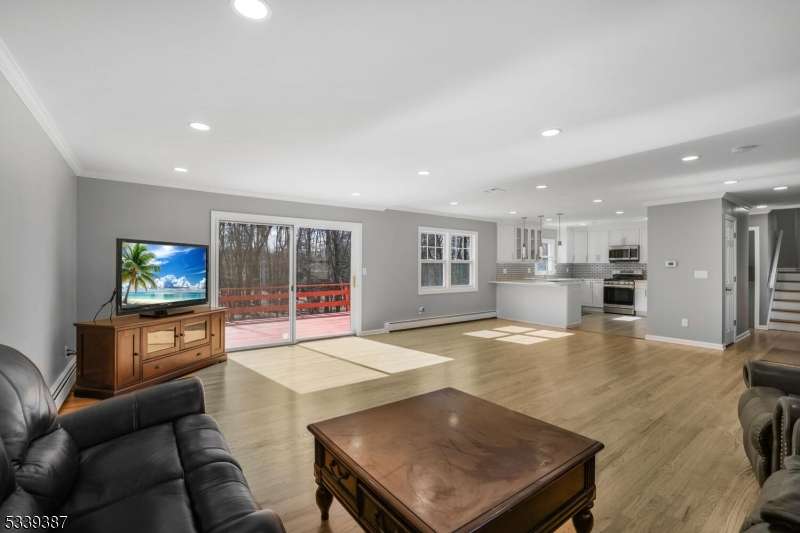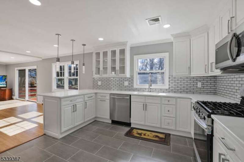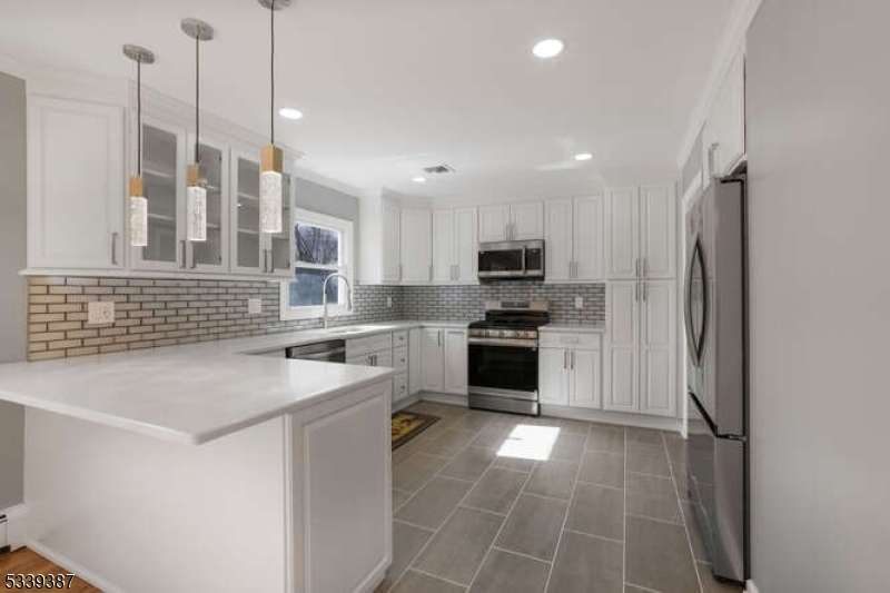 NEW CENTRAL AC UNIT!!!! Welcome to this beautifully updated 4-bedroom, 2.5-bathroom split-level home in the heart of West Caldwell. The home features modern, high-quality finishes, offering a seamless blend of style and functionality, and a New Roof (2025). The spacious kitchen is a true highlight, with sleek white cabinetry, gray tile flooring, quartz countertops, a garbage disposal, and a glass backsplash that adds a touch of elegance. New stainless steel appliances complete the kitchen, which is open to the living room and dining area, creating a perfect space for entertaining. Hardwood floors flow throughout the main living areas, offering warmth and sophistication, except for the kitchen and bathrooms, which are tastefully tiled. The home has been freshly painted in a neutral gray tone, providing a modern canvas for your personal touch. Upstairs, the primary bedroom features a luxurious ensuite bathroom, offering privacy and comfort. Additionally, the home includes a versatile third-floor office space and a large family/media room that can be customized to suit your needs. Step outside to the deck off the living room, perfect for relaxing or outdoor dining. With nothing left to do but move in, this home is ready for you to make it your own! Plus LOWER TAXES!!!