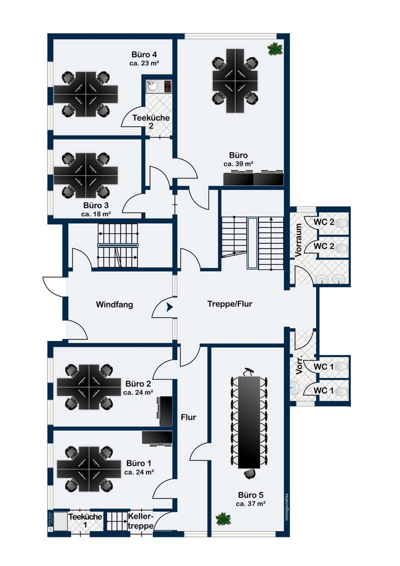 Welcome to this prestigious office building, built in 1965 and last extensively modernized in 2008. This modern office property impresses with its high-quality fittings and offers a wide range of options for use as office or practice space. It is in an extremely central location in Wolfsburg, which ensures excellent accessibility and visibility. The office space on the first floor has a total area of 240 m², which can be used efficiently. The room layout can still be adapted to best meet your individual requirements and needs. It is also possible to rent only part of the space. The modern technical equipment and design features reflect the high standard of the property and help to create a professional and comfortable working environment. In addition to the office building, sufficient parking spaces can be rented directly in front of the building, providing easy access for employees, business partners and customers. This is particularly invaluable in this central location and greatly improves the accessibility of your premises. The VW plant, Wolfsburg railroad station, numerous restaurants, shopping facilities and service providers are located in the immediate vicinity, making it easy to run errands during working hours and making your offices easily accessible even without a car. The property is in a modernized condition that meets the demand for contemporary and efficient workspaces. The well thought-out design combines functionality with an appealing aesthetic, creating an ideal basis for a productive working day. The comprehensive modernization measures carried out in 2008 ensure that the building is technically up to date and enables long-term use.