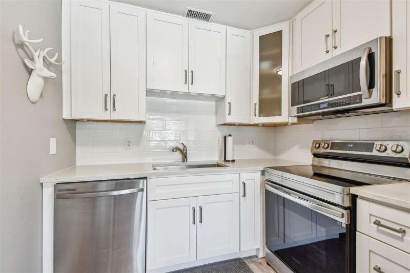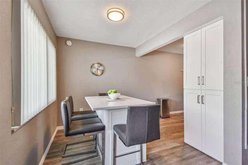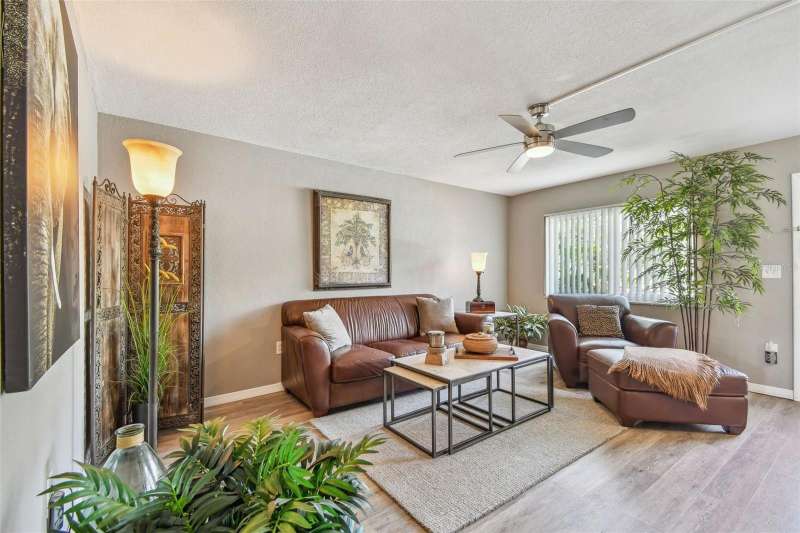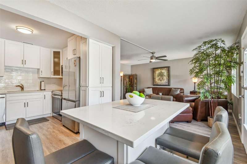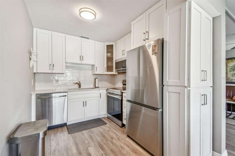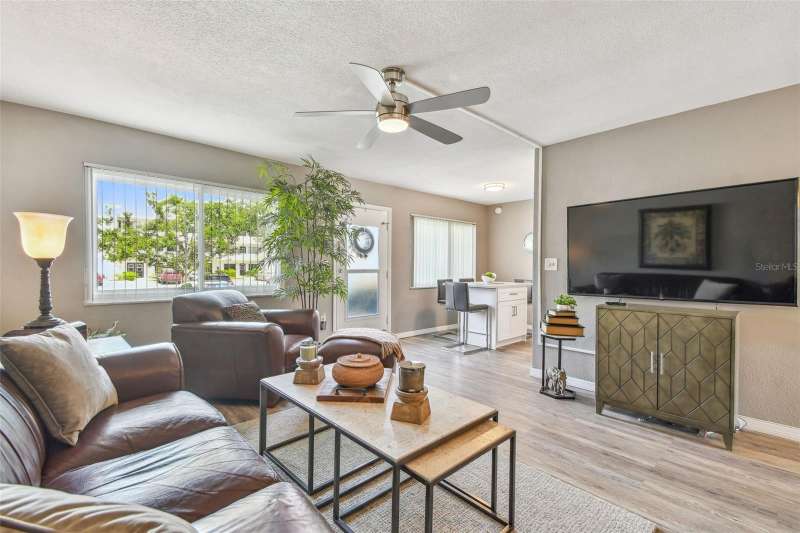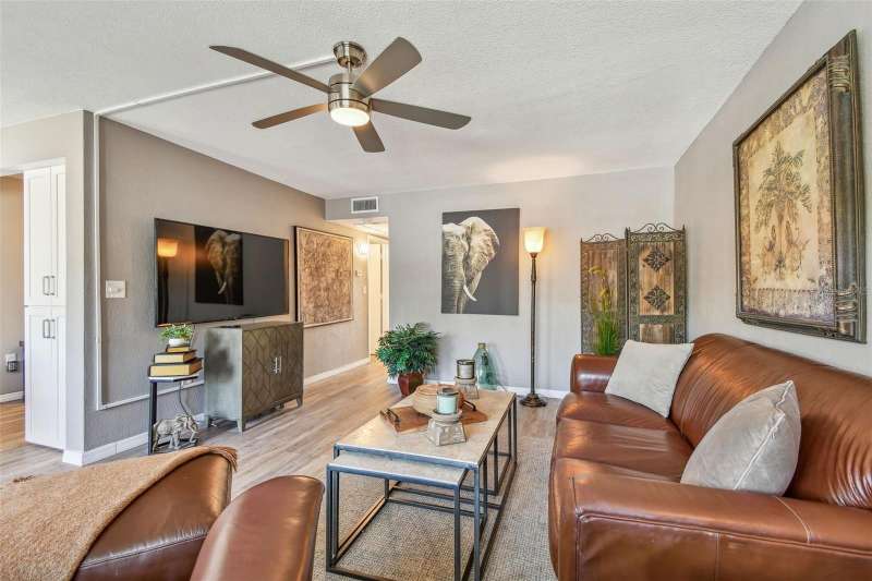 You won’t believe the updates! This beautiful 1 bedroom deluxe with 874 sq ft’ along with additional square footage in the Florida Room. This unit awaits its new owner to enjoy, the roof was just done in 2024, elevator was done in 2023. Now for inside renovations: Kitchen cabinets and pantry, quartz countertops, sink, faucet, back splash, dinette custom made table with cabinet displaying quartz countertop. All new appliances included. Light fixtures & Fans though out the condo, popcorn ceilings removed and freshly painted! New luxury Vinyl flooring through-out, floor baseboard molding and tile in the Florida room. Front two new windows are hurricane, AC, HWH, 1 full bath completely renovated walk in shower, vanity, toilet. Hall has a larger size linen closet for storage or extras. Primary bedroom has walk in closet along with a wall of bifold closet. Fully Furnished just bring your clothes and start your luxury living in Seminole, FL. You also have storage in the laundry room for your not every day needed items conveniently located in the center of the building next to mailbox and elevators. You have a dedicated Parking Space located in front of the building and plenty of guest parking. Monthly HOA FEE of $739.40 The fee includes LAND LEASE, TAXES, Water, Sewer and Trash. Take time to visit the Peacock center where you will get enjoyment out of the year around heated pool, spa and sauna for relaxing. Seminole Garden has local shopping center with plenty of shopping and great food right around the corner in the Seminole City Center. Beautiful walk thru the 52 acres with 3 lakes, shuffleboard courts and picnic area next to pool. There is a community Free shuttle bus 5 days a week to local shopping and banks. Seminole Gardens is the best kept secret and your 5 minutes to the Gulf beaches. You are also centrally located in the Tampa Bay Area with easy access to 2 Airports, Tampa international Airport & St Pete Airport. Enjoy Spring Training Baseball in Clearwater & Dunedin, The Tampa Bay Rays and Rowdies in St. Petersburg, a quick drive to Tampa to see the Tampa Bay Lightning and the Buccaneers. Seminole Gardens is a 55+ Community