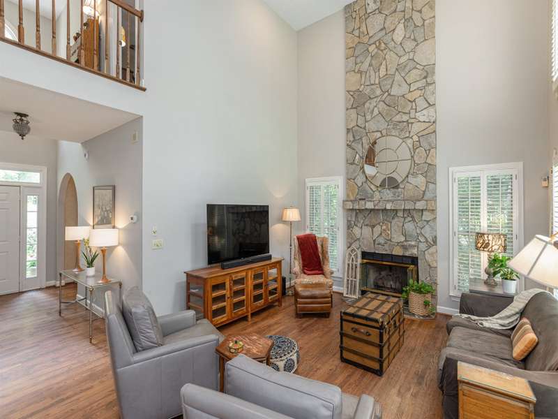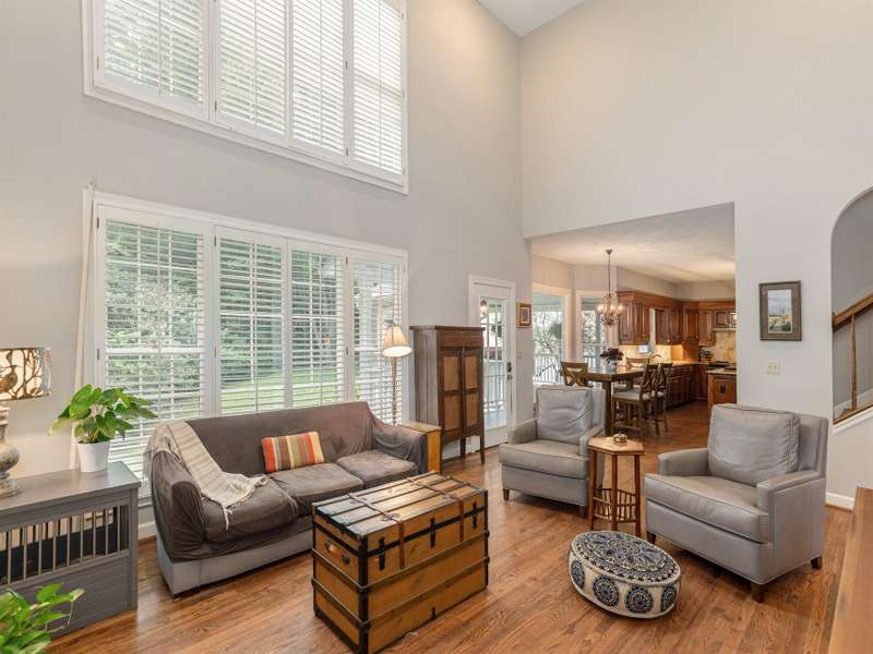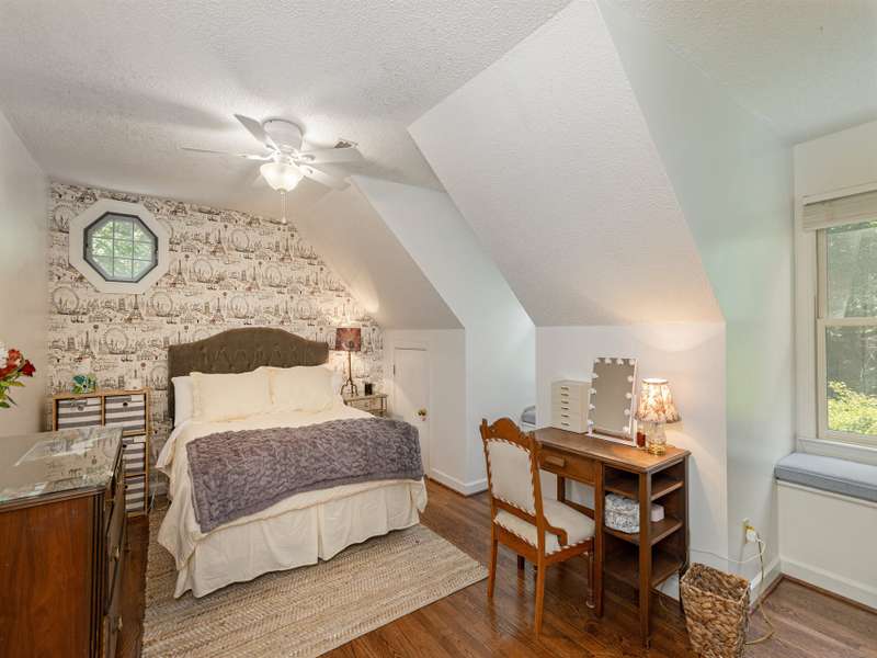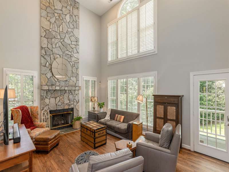 Set back from the street on a beautifully landscaped lot, this lovely home has much to offer, including formal living and dining rooms, a 2-story family room open to a spacious kitchen, a main level recreation room, 5 bedrooms, an office and an exercise room. There are stainless appliances, granite counters, under-counter lighting, 9' ceilings, tall windows, plantation shutters, built in bookcases, wood floors and two fireplaces. The porch off the kitchen and family room provides exceptional outdoor space that overlooks the yard and into the trees. The garage has space for 4 vehicles with one of the doors being tall enough to accommodate a camper or other tall vehicle. Above the garage is 970 square feet of additional space that can be used for storage or adapted to meet your needs. Haw Creek and Reynolds School District. This exceptional property is just minutes from downtown Asheville, but the tranquil setting feels as if you are miles away. This may be the home of your dreams.