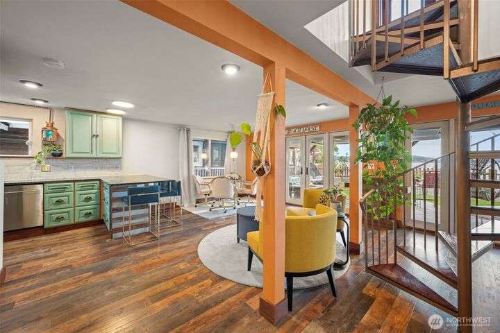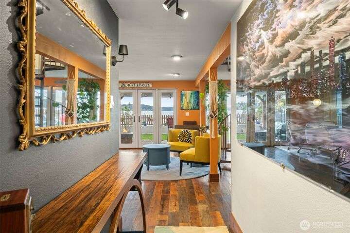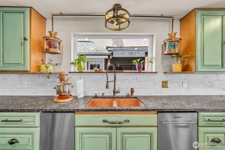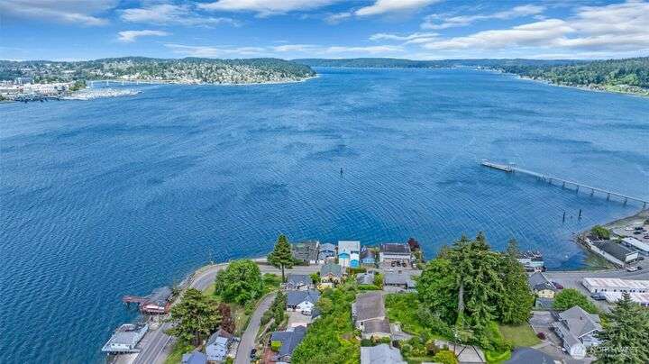 Experience year-round waterfront living in this fully rebuilt Sinclair Inlet home showcasing custom craftsmanship and boutique design. Watch ferries, naval vessels, and Friday-night sailboat races glide by, and enjoy downtown’s farmers market and cafés just a short distance away. In Summer, watch the Bridge Blast fireworks from the deck or cast for salmon at the waters edge of your front yard. Inside, a chef’s kitchen features a copper farmhouse sink, commercial gas range, and vintage flattop griddle; spa-style baths include a steam shower and spacious 8-head shower in primary. Built with energy-efficient SIPs panels and engineered stem walls, plus EV and hot-tub wiring, this waterside retreat pairs coastal charm with enduring quality.