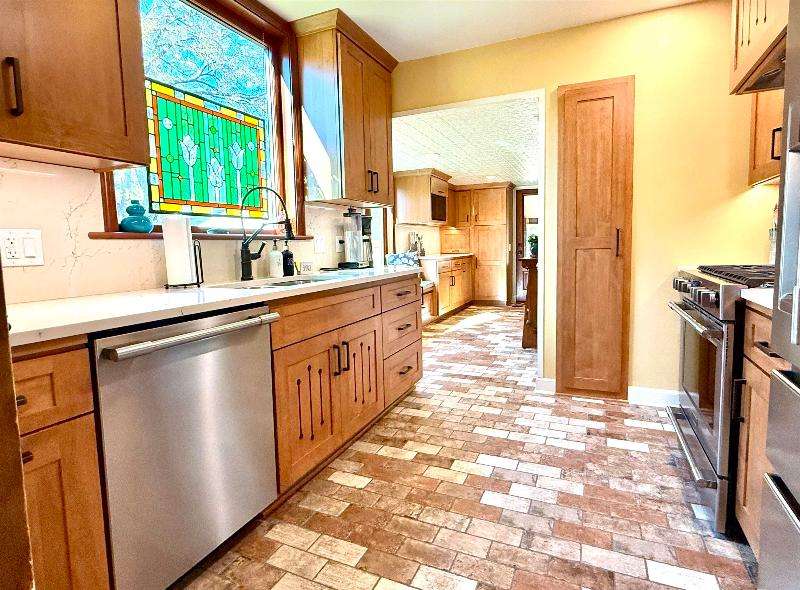 Discover the timeless elegance of this charming Tudor style home, where classic architecture meets modern convenience in perfect harmony. This thoughtfully updated four-bedroom, two-bathroom residence, showcases the care and attention of homeowners who understood that quality improvements make all the difference. Step Inside to find a stunning kitchen transformation that serves as the heart of the home, complete with radiant floor heating that keeps your toes toasty during Wisconsin winters. Every appliance sparkles with newness, making meal preparation a genuine pleasure rather than a chore. The beautiful updates extend throughout, with completely remodeled bathrooms that blend functionality with style. Weather protection comes courtesy of new composite siding, fresh gutters, and replacement windows throughout. The front and back doors have been upgraded welcoming guests while keeping energy costs in check. Outside you'll find your own private oasis with a fully enclosed backyard featuring vinyl privacy fencing, perfect for entertaining guests, letting children play safely or simply enjoying quiet moments with your morning coffee the landscaping and well-maintained grounds create an inviting outdoor environment. Convenience factors throughout with the addition of a tankless water heater, ensuring endless hot showers without the bulk of a traditional tank. Located near Memorial Park and the river, outdoor recreation opportunities just moments from your doorstep. This home represents the ideal blend of a Tudor charm and the contemporary comfort where every update has carefully been considered to enhance daily living while maintaining the character that makes these homes so beloved.