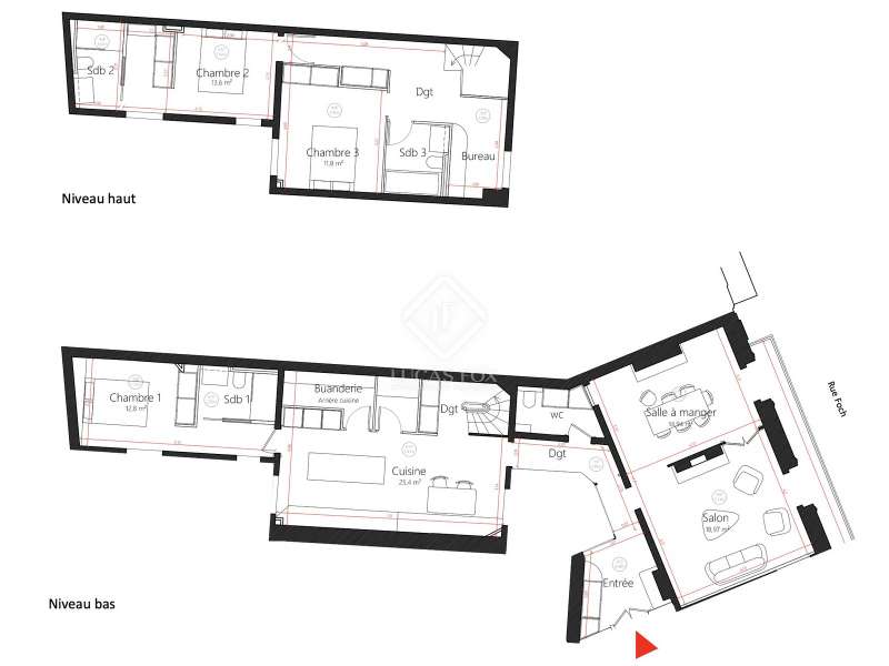 Lucas Fox International Properties, in the sought-after Golden Triangle area of Montpellier, between the Arc de Triomphe, the prefecture and the Saint-Anne church, apartment in a charming Haussmannian building currently being renovated (roof, facades, entrance, staircase and installation of an elevator). On the 2nd floor, a dual-aspect apartment comprising a traditional part and an unusual part (duplex). The 143 m² of which it is composed are arranged as follows: (bourgeois part) entrance hall, living room and dining room opening onto delightful city balconies with a view overlooking the Arc de Triomphe and its rue Foch; (unusual part) eat-in kitchen, 3 bedrooms and two shower rooms. Ideal for residential, office, or commercial use. This charming apartment offers great potential. A private cellar and shared bike/scooter storage area are available. Interior renovations are planned, and it is possible to subscribe to a "works contract" allowing you to be accompanied by an architect for the complete renovation of the apartment. The total budget (land + works) would amount to €796,000. The completion of the building renovation work is scheduled for June 2025. Information on the risks to which this property is exposed is available on the Géorisques website: www.georisques.gouv.fr.