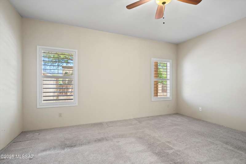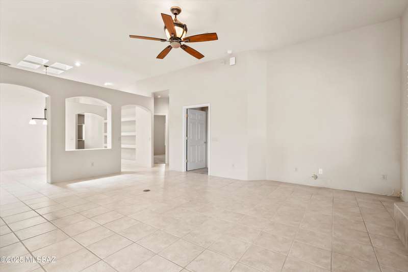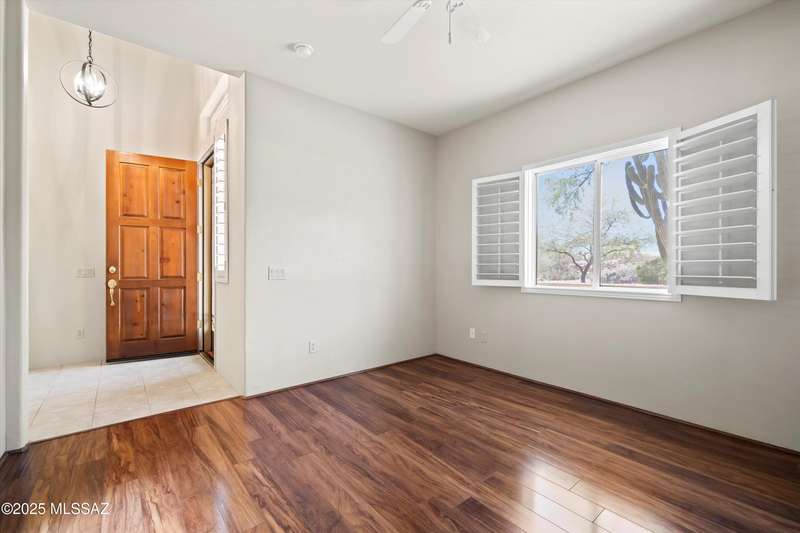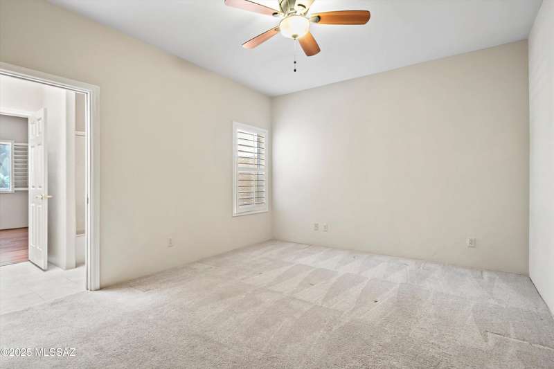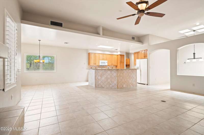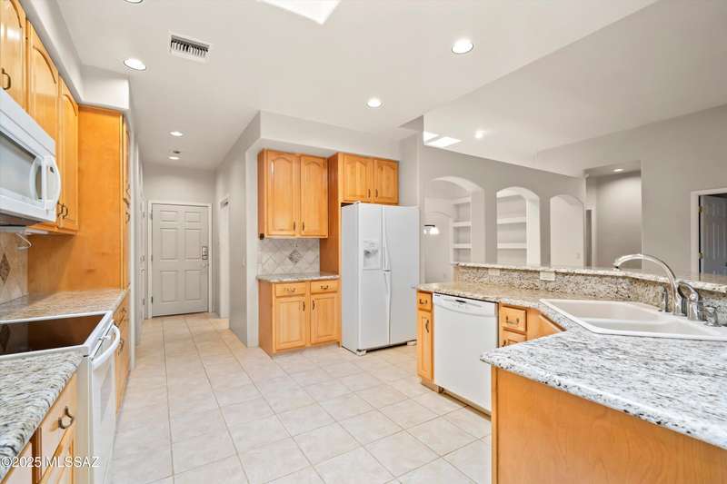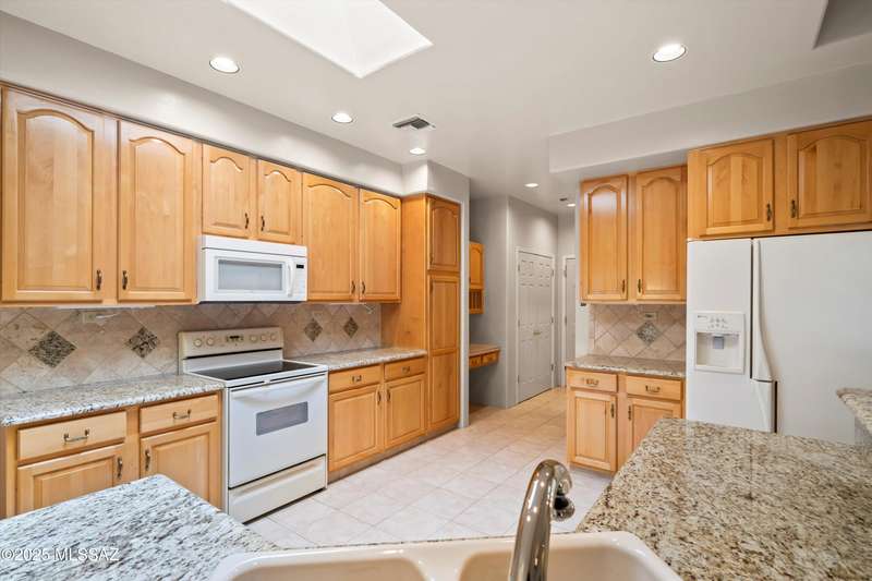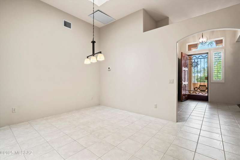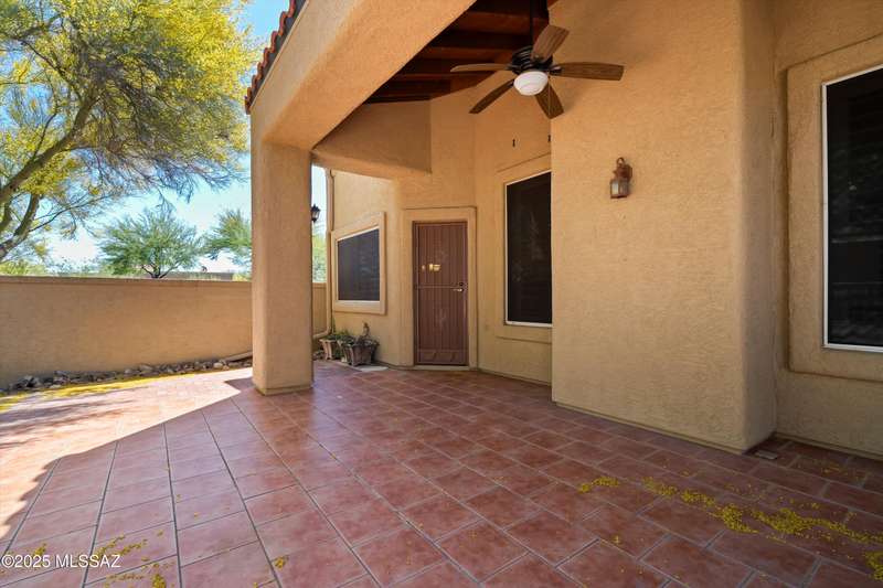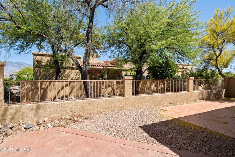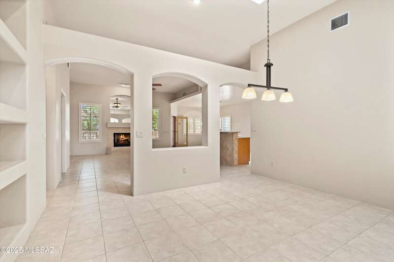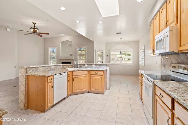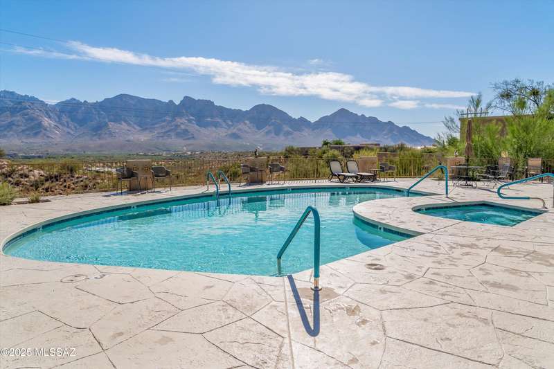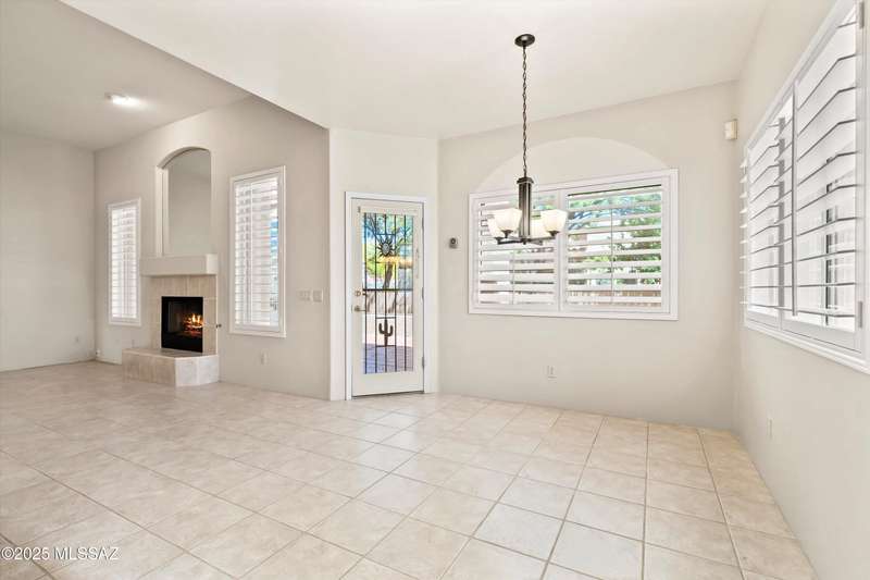 Exceptional 2BD/2BA+den (2024 sqft) townhome located in highly desirable gated Vistoso Hills. Welcoming courtyard flows to open concept plan. Embrace the spacious great room with gas fireplace and formal dining area for entertaining. Gourmet kitchen showcases granite countertops, custom tile backsplash, breakfast bar, ample cabinetry and sleek appliances. Luxurious owner's suite boasts ensuite bath with double vanities, walk-in shower and closet. Split floor plan allows guest complete privacy. Jack-n-Jill bath allows easy access to den/office. Beautiful shutters throughout. HVAC and water heater new 2023. Retreat to a tranquil covered patio and backyard. This lovely corner lot home is a quick walk to community pool to take in unbelievable mountain views. Truly a Must See!
