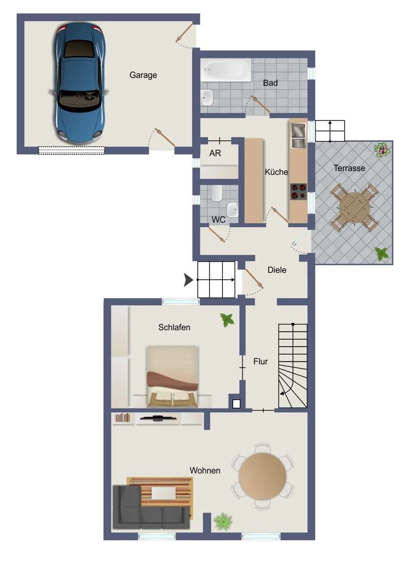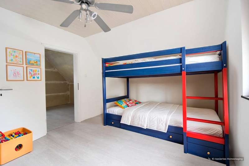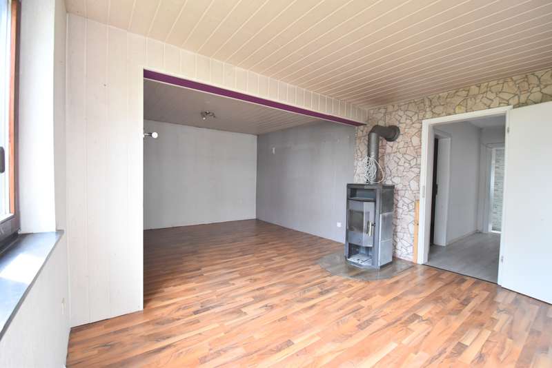 A detached house with a living space of approx. 101 m² is for sale in a quiet neighborhood. The house is located in an attractive residential area with good infrastructure and a pleasant neighborhood. Schools, shopping facilities and public transport are all nearby. Built in 1950, the property is now in need of extensive renovation. Alternatively, you can also realize your personal living ideas on the approx. 615 m² property after demolition. The area is eligible for refurbishment measures, and we would be happy to discuss the details with you. You enter the house via a few steps and first reach the hallway with space for your wardrobe. The living room forms the homely focal point, a breakthrough to the adjoining room could bring a modern line. The existing bathroom is also in need of modernization. Upstairs, the property has two bedrooms and a connecting room, offering enough space for a small family or a couple. The property is currently heated by outdated wood-burning stoves.