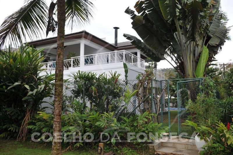 Maravilhosa residência em condomínio fechado, com infraestrutura e segurança, próximo a Praia. Cinco suítes, sala com três ambientes, piso de porcelanato branco, som ambiente no térreo, na piscina e nas três suítes principais. Cozinha, sala de almoço integrado com a área gourmet, churrasqueira e forno de pizza. Ar condicionado em todos os ambientes. Piscina aquecida, spa e sauna. Casa de caseiro com dois dormitórios e cozinha. Toda a mobília.