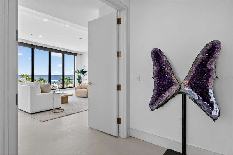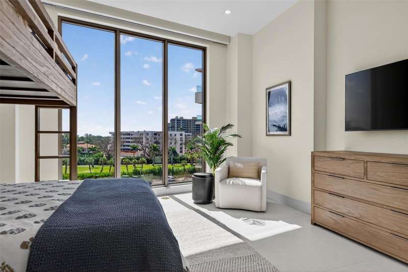 A rare opportunity to own the largest two-bedroom floor plan at the exclusive St. Regis Longboat Key. This premier corner residence offers sweeping views of the Gulf of Mexico, Sarasota Bay, resort grounds, and the tropical saltwater lagoon from its expansive wraparound terrace. Flooded with natural light, the spacious living room is ideal for entertaining, complete with a custom bar and beverage refrigerator. The chef’s kitchen is designed with Poggenpohl cabinetry, Wolf and Sub-Zero appliances—including double ovens, gas cooktop, refrigerator, microwave, and dishwasher. An outdoor Wolf gas grill extends the culinary experience to the terrace. The owner’s suite is a private retreat with floor-to-ceiling glass framing breathtaking Gulf views. A morning bar enhances the space, while a custom Closet Envy wardrobe offers exceptional storage. The spa-inspired bath features dual vanities, two private water closets, a walk-in shower, and a soaking tub with stone surround. The ensuite guest bedroom, also with custom built-ins, opens to the terrace for seamless indoor-outdoor living. Designer finishes throughout, curated by Marc Michaels Interior Design, deliver timeless sophistication. Residents of The St. Regis Longboat Key enjoy world-class amenities, including a private clubhouse with fitness center, resident-only pool and spa, and signature St. Regis Butler and Concierge services. Resort offerings extend to an oceanfront spa, beachfront cabanas, diverse dining venues, a lazy river, and a saltwater lagoon alive with tropical fish, stingrays, and resident tortoises. Set on 17 acres of pristine beachfront and just 3.5 miles from St. Armands Circle’s renowned shopping and dining, this residence is more than a home—it is an invitation to embrace the legendary St. Regis lifestyle, where elegance, comfort, and unparalleled service define every moment.
