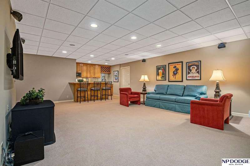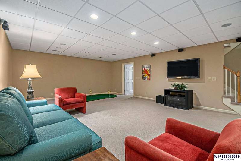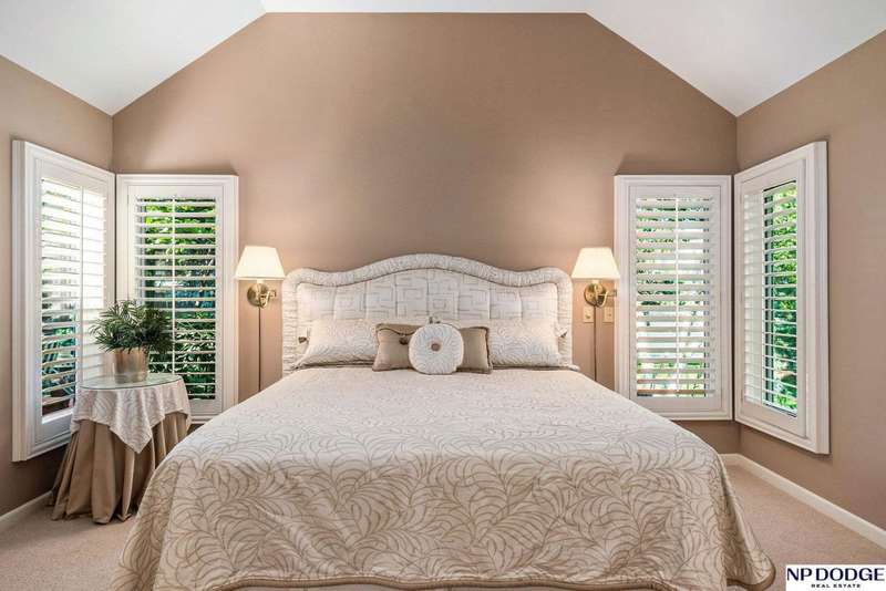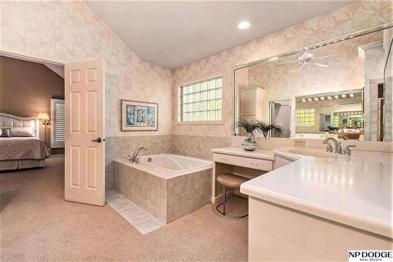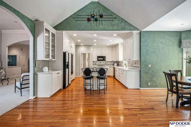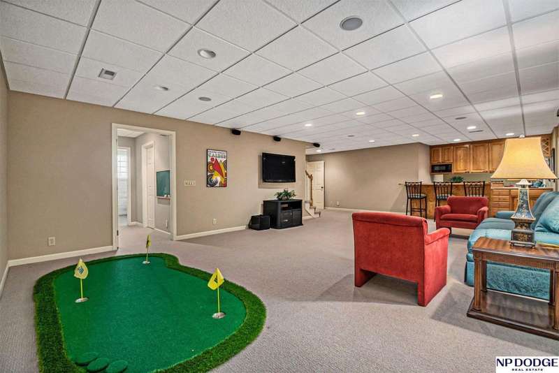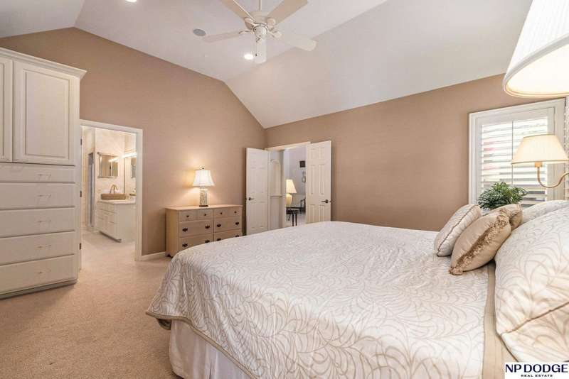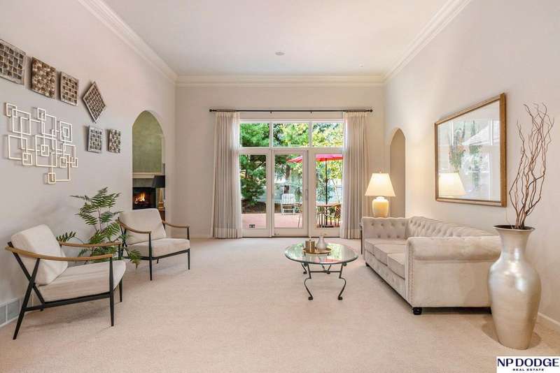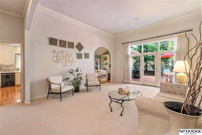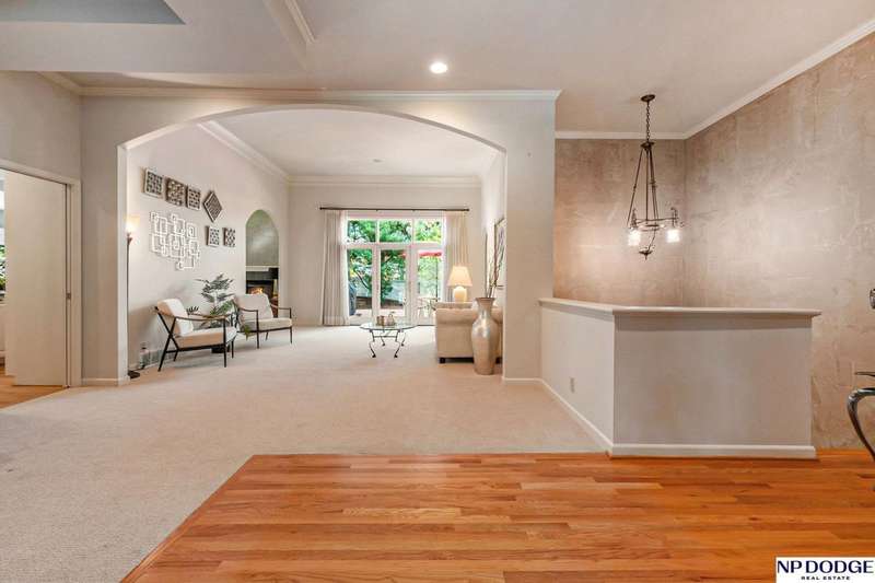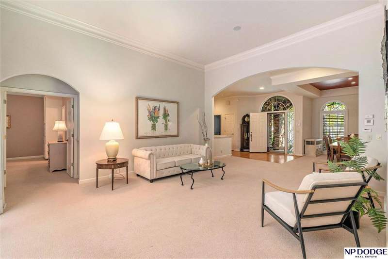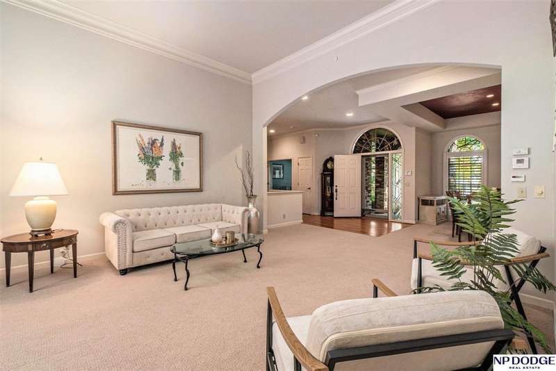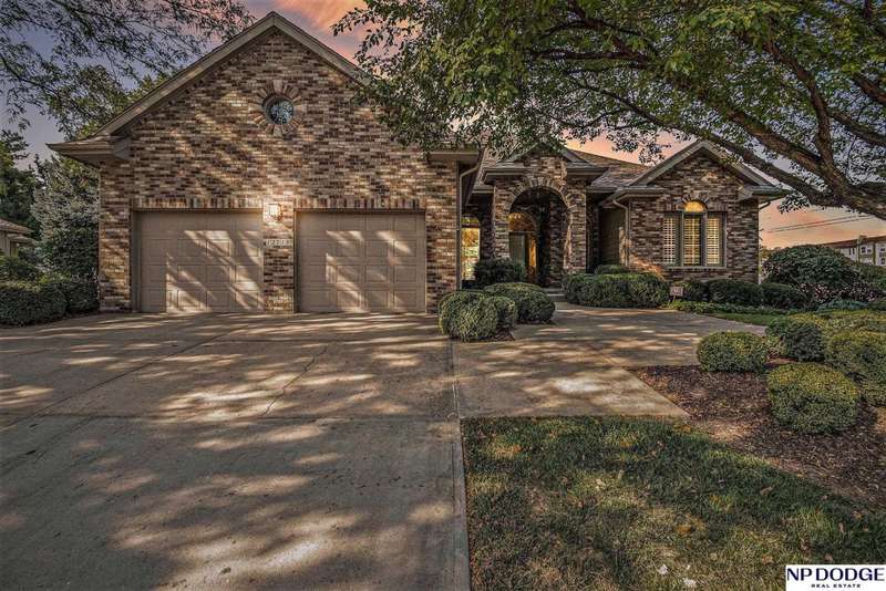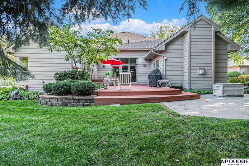 Gorgeous Ranch in this Unique Gated Community in the HEART of West Omaha! This home blends elegance, comfort, and functionality with abundant living spaces, perfect for entertaining. Host in the formal living & dining rooms, or gather in the beautiful & spacious kitchen that flows into a cozy hearth room with a stone fireplace. The primary suite is a true retreat, featuring a spa-like ensuite with a walk-in shower, soaking tub, vanity space galore and an impressive two-story closet with custom built-ins. A large main-floor bonus room offers endless possibilities: office, music room, library, or even a generously sized bedroom with a walk in closet. The lower level is built for fun and function, boasting a rec room, wet bar for serving guests, two additional bedrooms, an exercise/flex room, and an expansive storage area. Step outside to the oversized deck, ideal for morning coffee, evening BBQs, or simply soaking in the peaceful surroundings. Meticulously landscaped lawn.